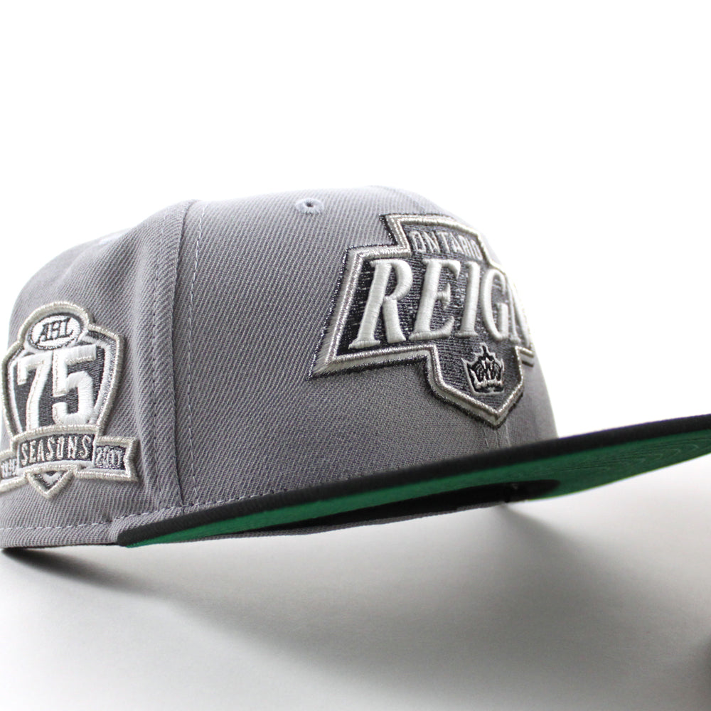 Ontario Reign 75th Anniversary New Era 59Fifty Fitted Cap in Gray, Black and Green Under Brim.