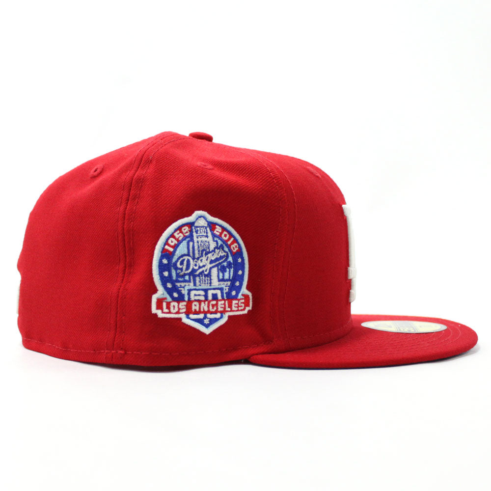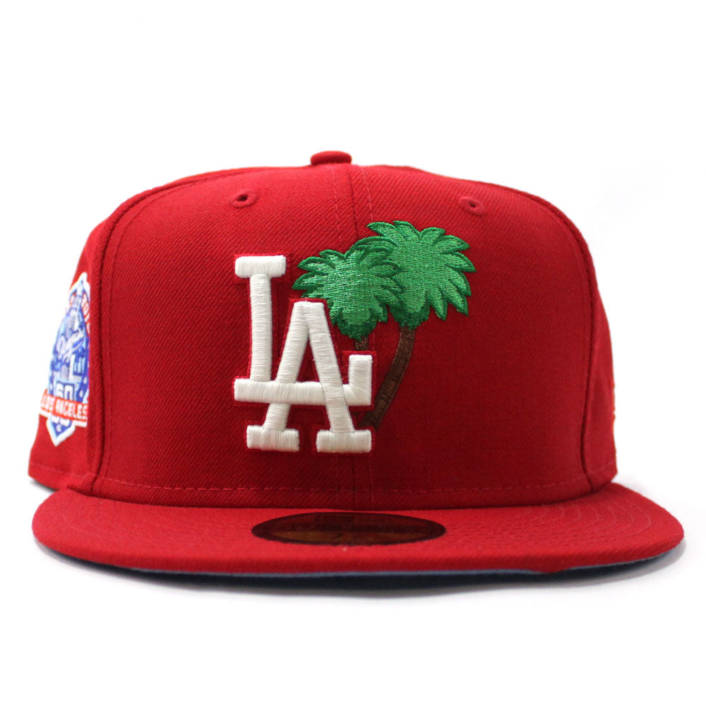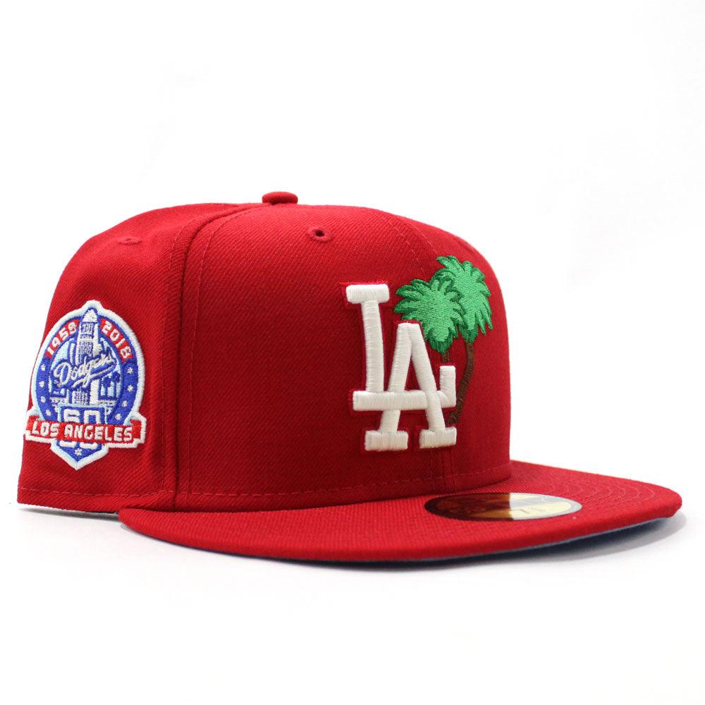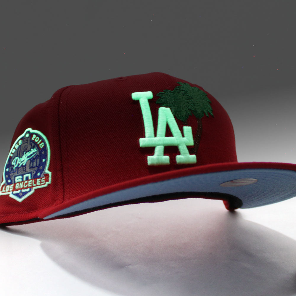 Palm Tree Los Angeles Dodgers 60th Anniversary New Era 59Fifty Fitted Hat in Red, Glow in the Dark & SKY BLUE Under Brim.