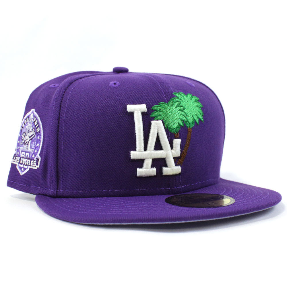 Palm Tree Los Angeles Dodgers 60th Anniversary New Era 59Fifty Fitted Hat (Purple Glow in the Dark Lavender Under Brim)