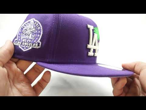 Palm Tree Los Angeles Dodgers 60th Anniversary New Era 59Fifty Fitted Hat in Purple, Glow in the Dark & Lavender Under Brim.