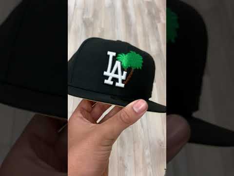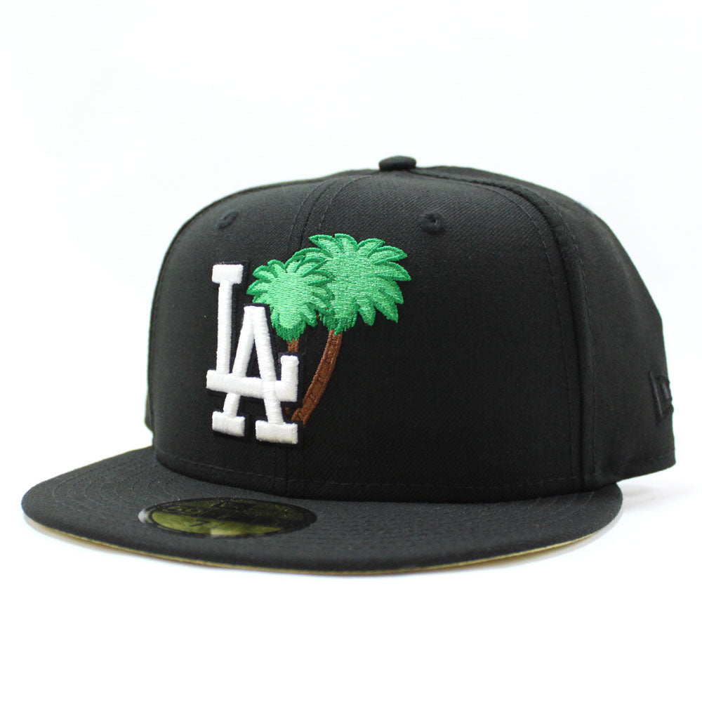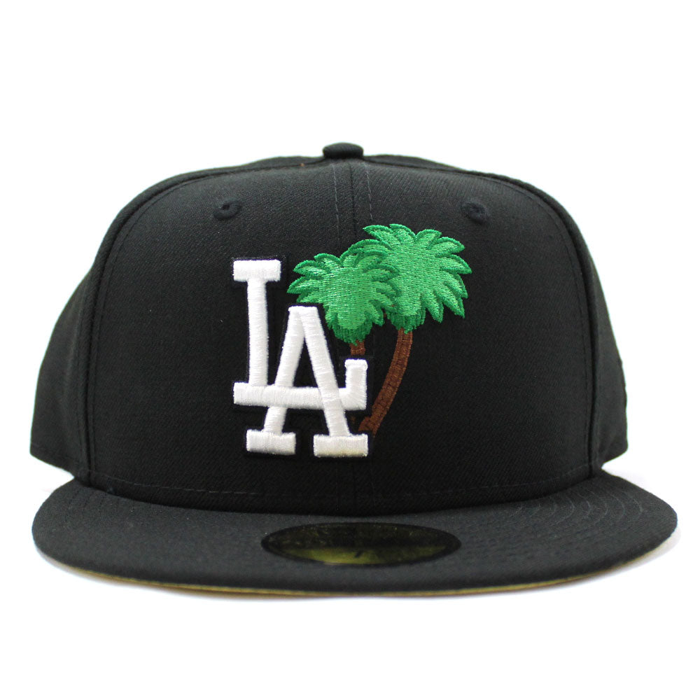 Palm Tree Los Angeles Dodgers New Era 59Fifty Fitted Hat in Black & Yellow Under Brim.