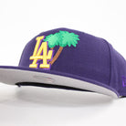 Palm Tree Los Angeles Dodgers New Era 59Fifty Fitted Hat in Purple & Gray Under Brim.
