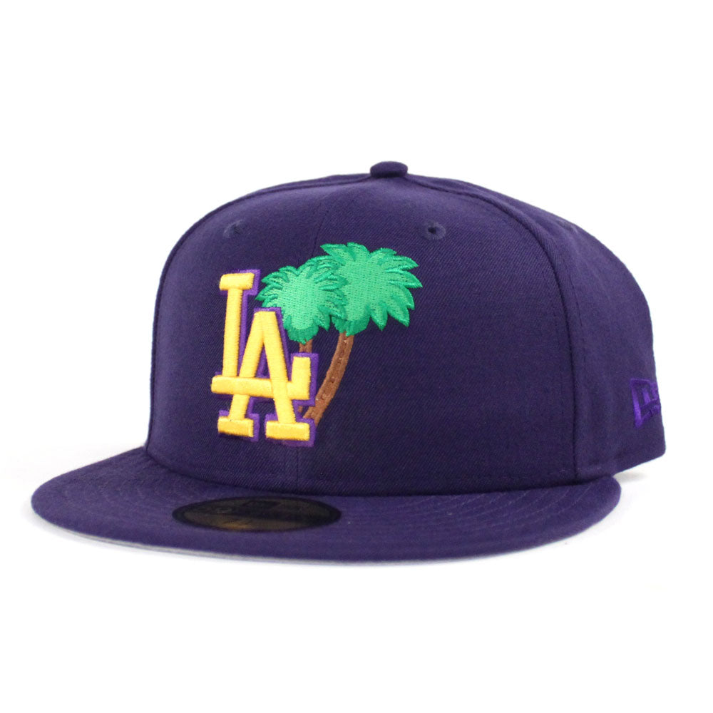 Palm Tree Los Angeles Dodgers New Era 59Fifty Fitted Hat (Purple Gray Under Brim)