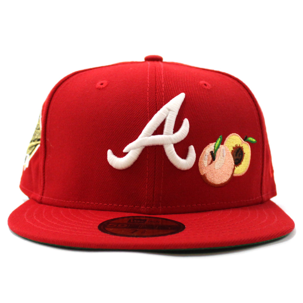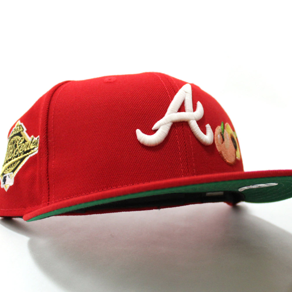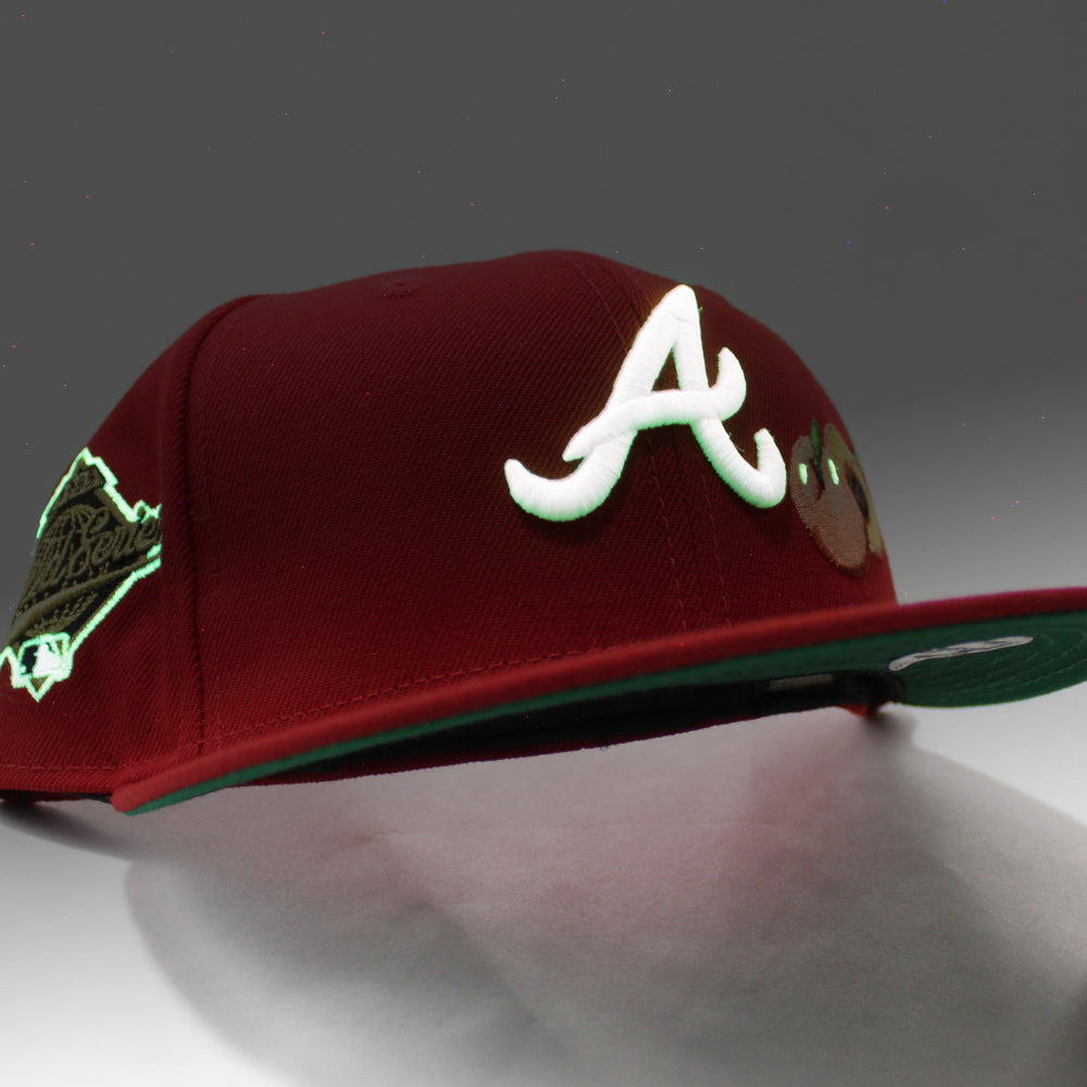 Peach Atlanta Braves 1995 World Series New Era 59Fifty Fitted Hat (Glow in the Dark Red Green Under Brim)