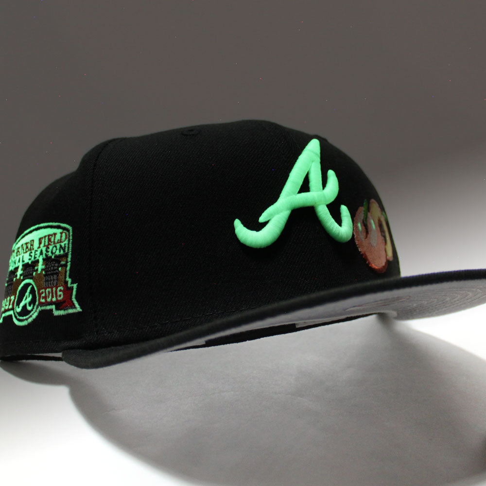 Peach Atlanta Braves TURNER FIELD FINAL SEASON New Era 59Fifty Fitted Hat (Glow in the Dark Black Gray Under Brim)