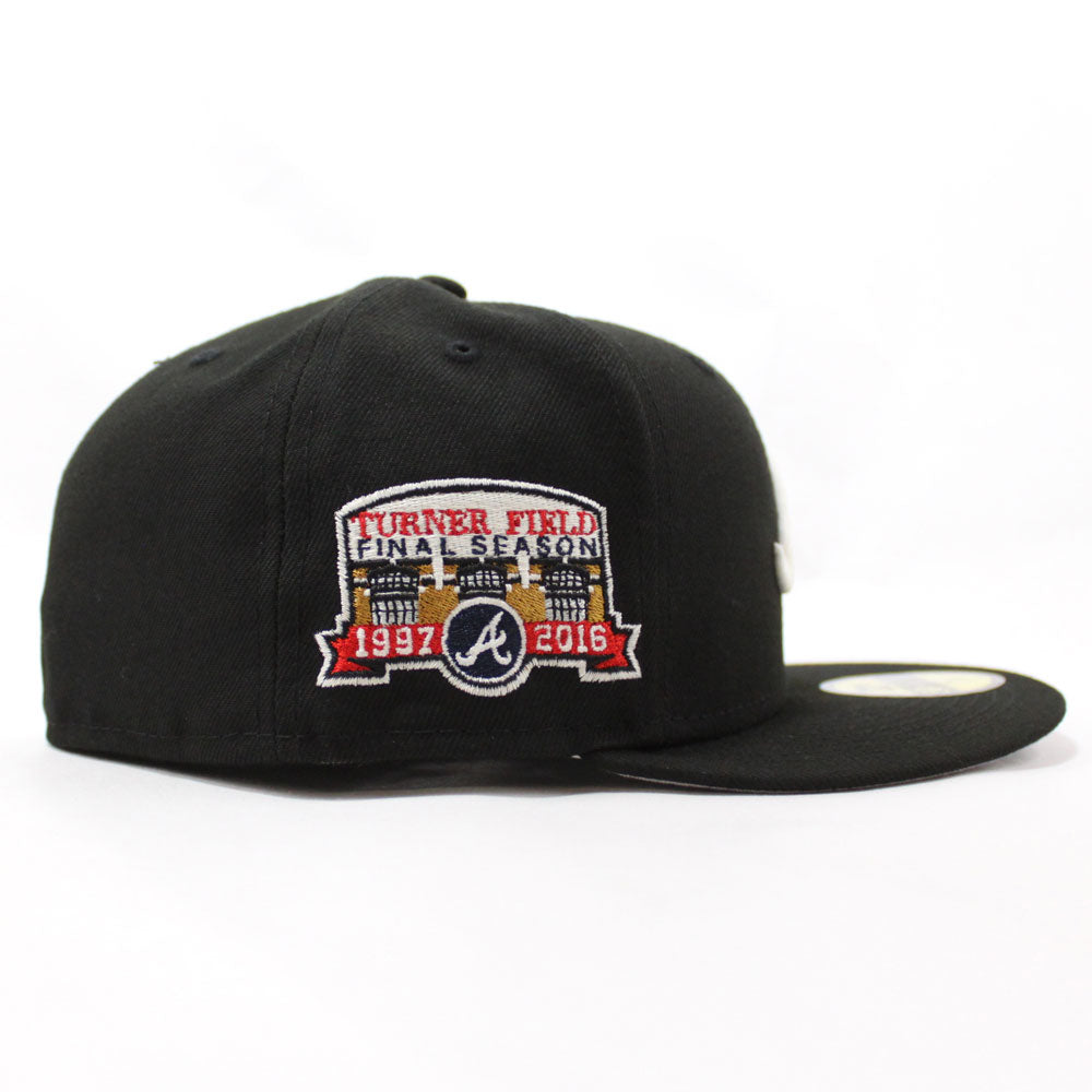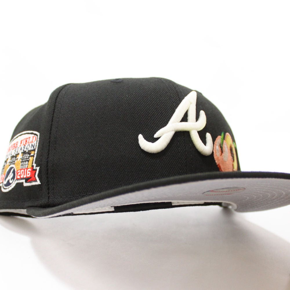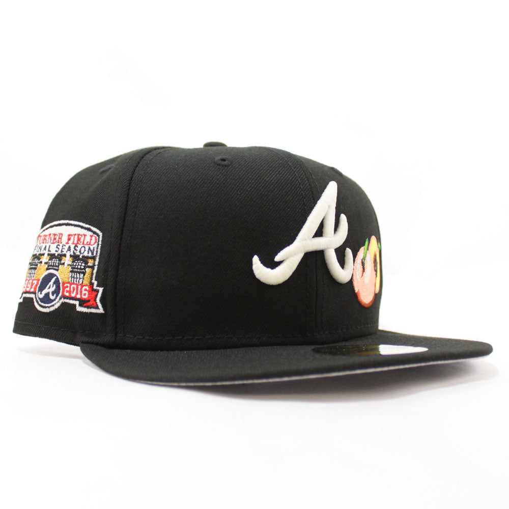 Peach Atlanta Braves TURNER FIELD FINAL SEASON New Era 59Fifty Fitted Hat in Black & Gray Under Brim.