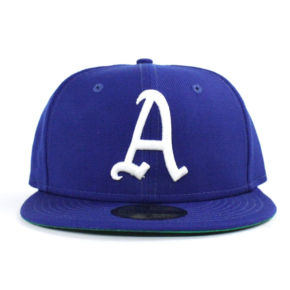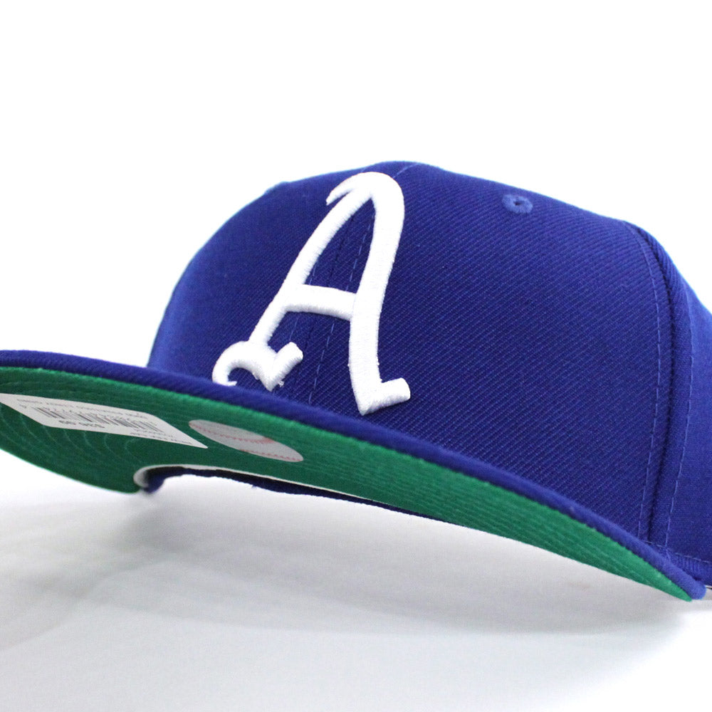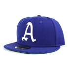 Philadelphia Athletics New Era 59Fifty Fitted Hat made in traditional throwback colors Blue with a Green under brim.