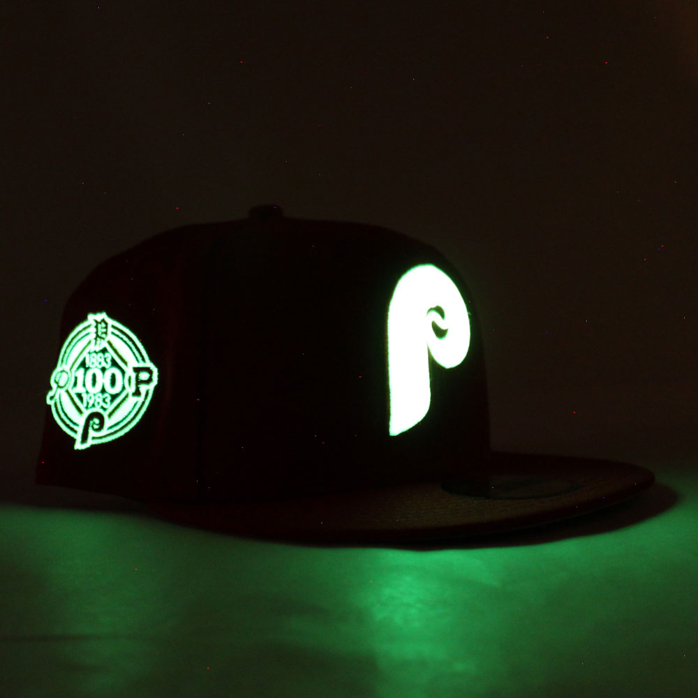 Philadelphia Phillies 100TH Anniversary 59Fifty New Era Fitted Cap (Glow in the Dark Logo Red Grey Under Brim)
