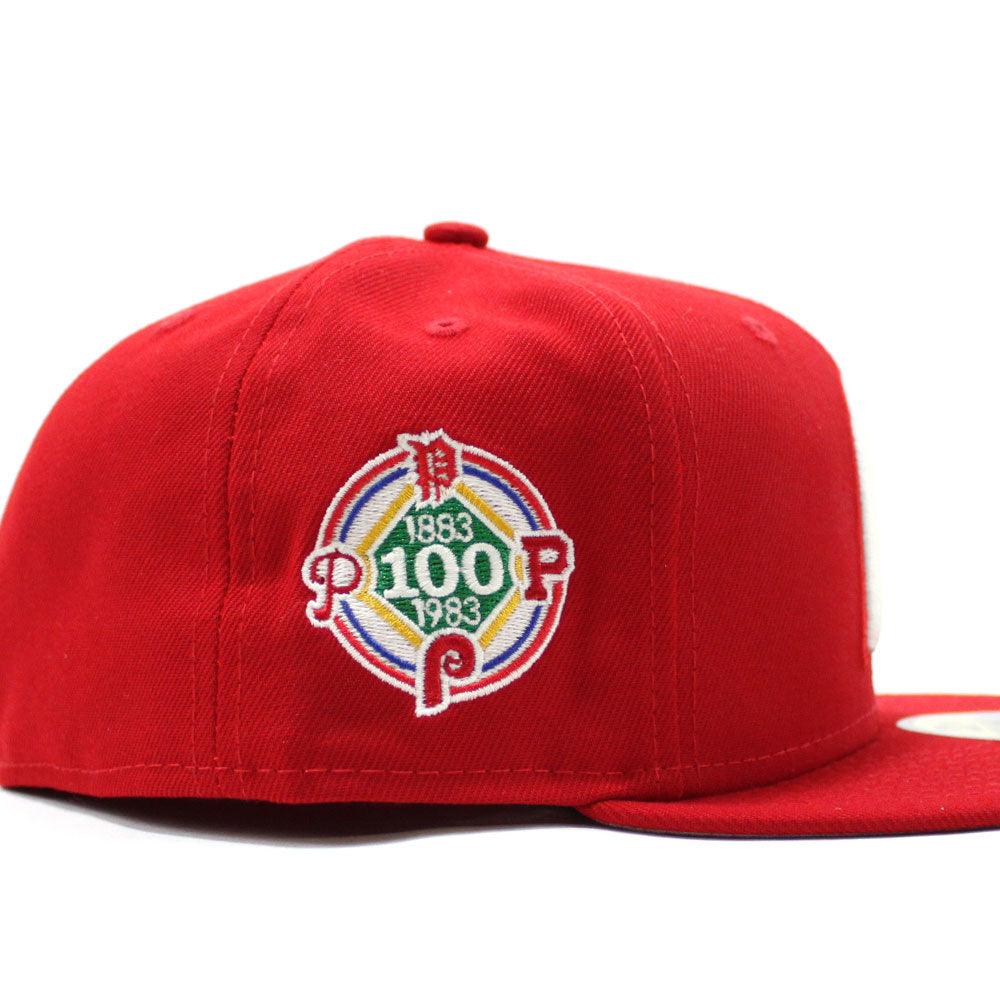 Philadelphia Phillies 100TH Anniversary 59Fifty New Era Fitted Cap in Red with Grey Under Brim