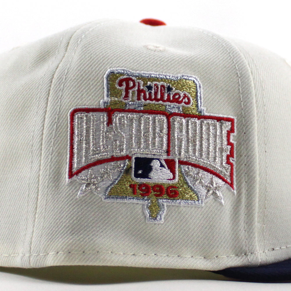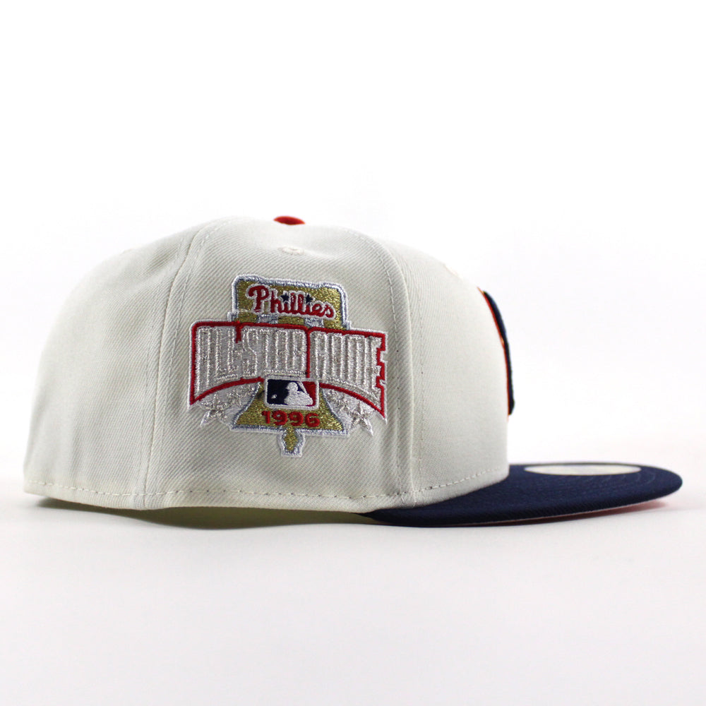 Philadelphia Phillies 1996 All Star Game 59Fifty New Era Fitted Hat (Chrome White Oceanside Blue Pink Under Brim)