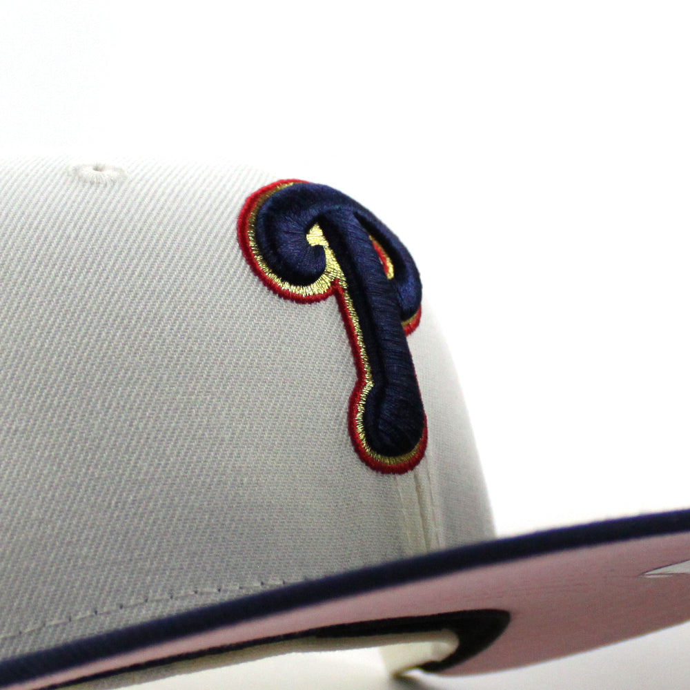 Philadelphia Phillies 1996 All Star Game 59Fifty New Era Fitted Hat in Chrome White and Oceanside Blue With a Pink Under Brim.