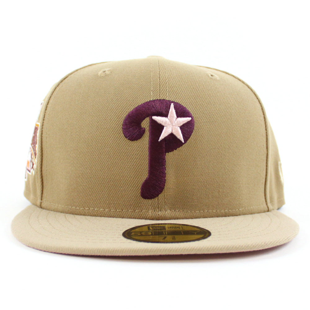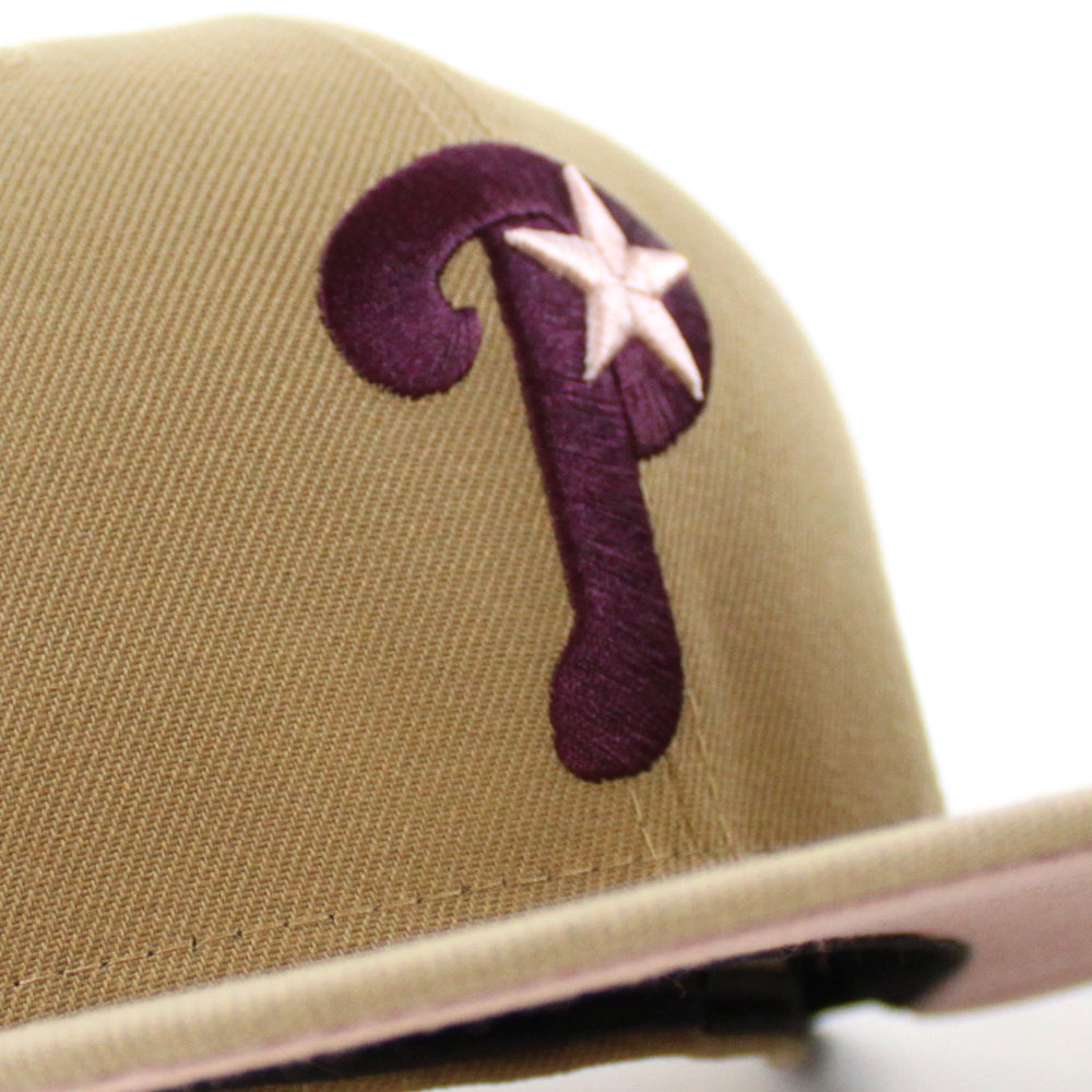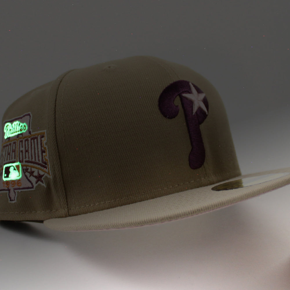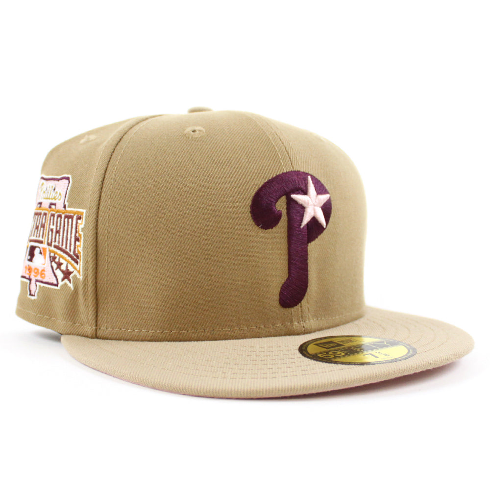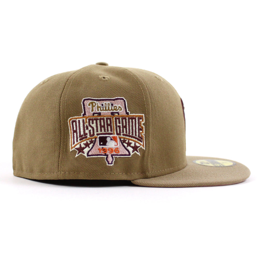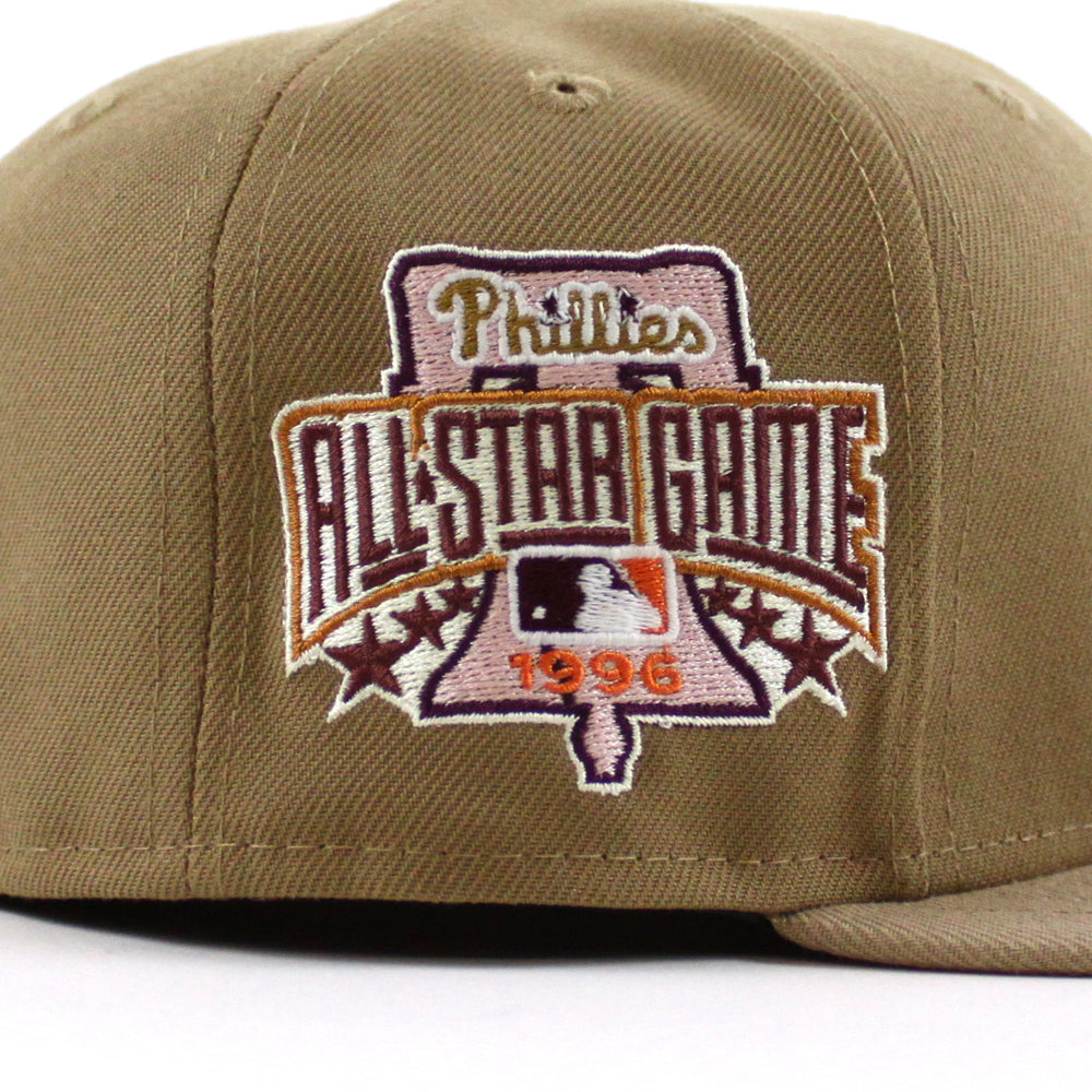 Philadelphia Phillies 1996 All Star Game 59Fifty New Era Fitted Hat in Khaki, Camel & Pink Under Brim.
