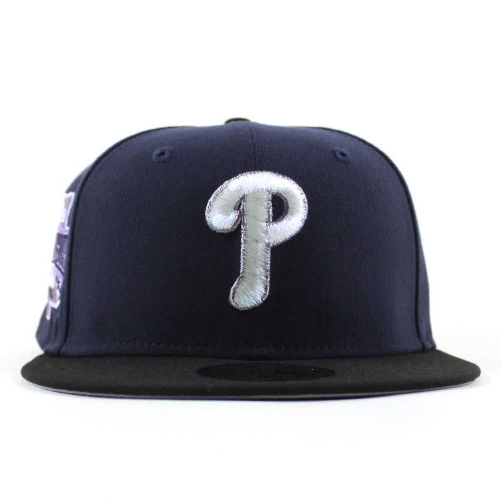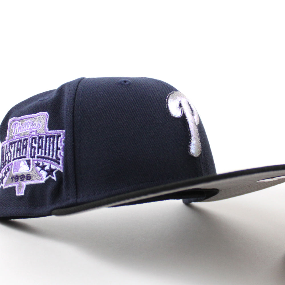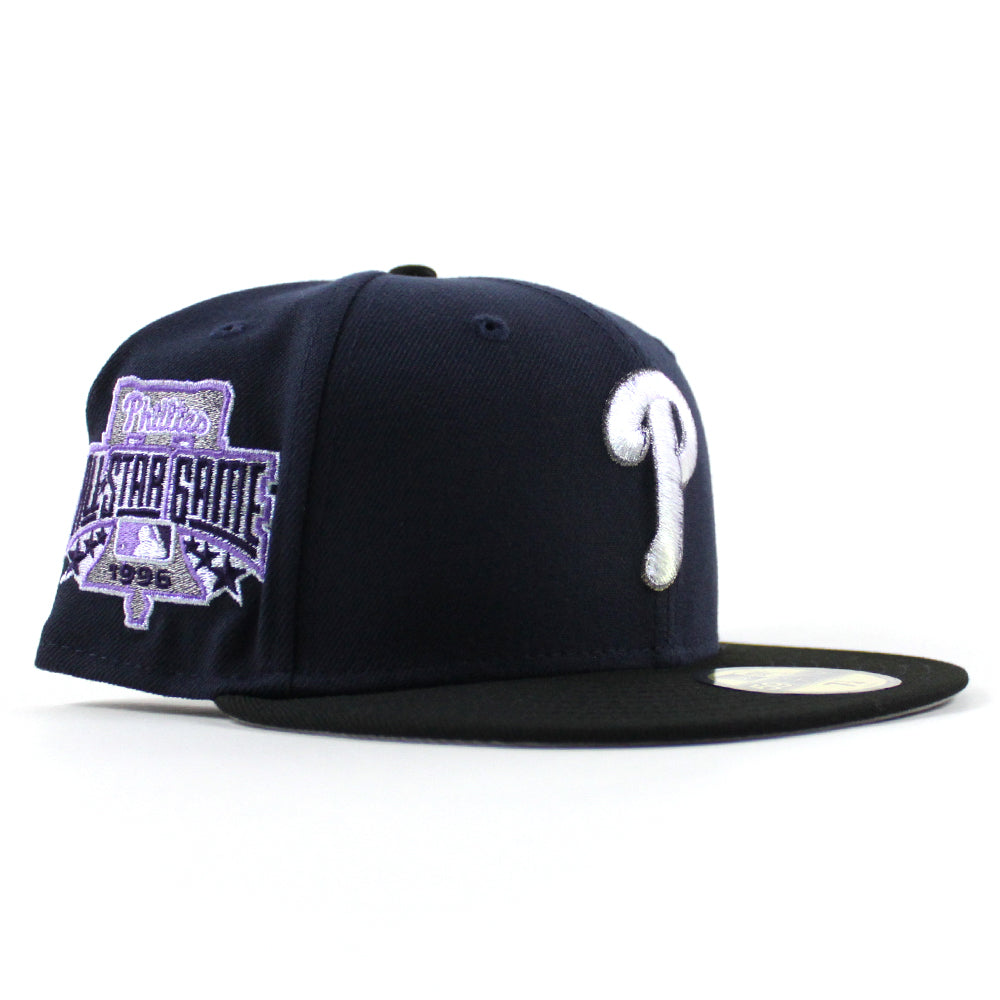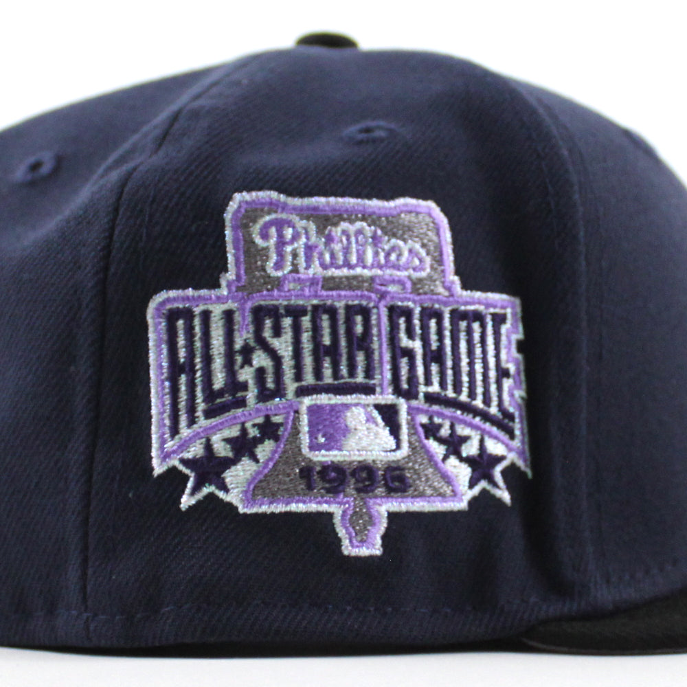 Philadelphia Phillies 1996 All Star Game 59Fifty New Era Fitted Hat in Night Shift Navy and Black With a Gray Under Brim.