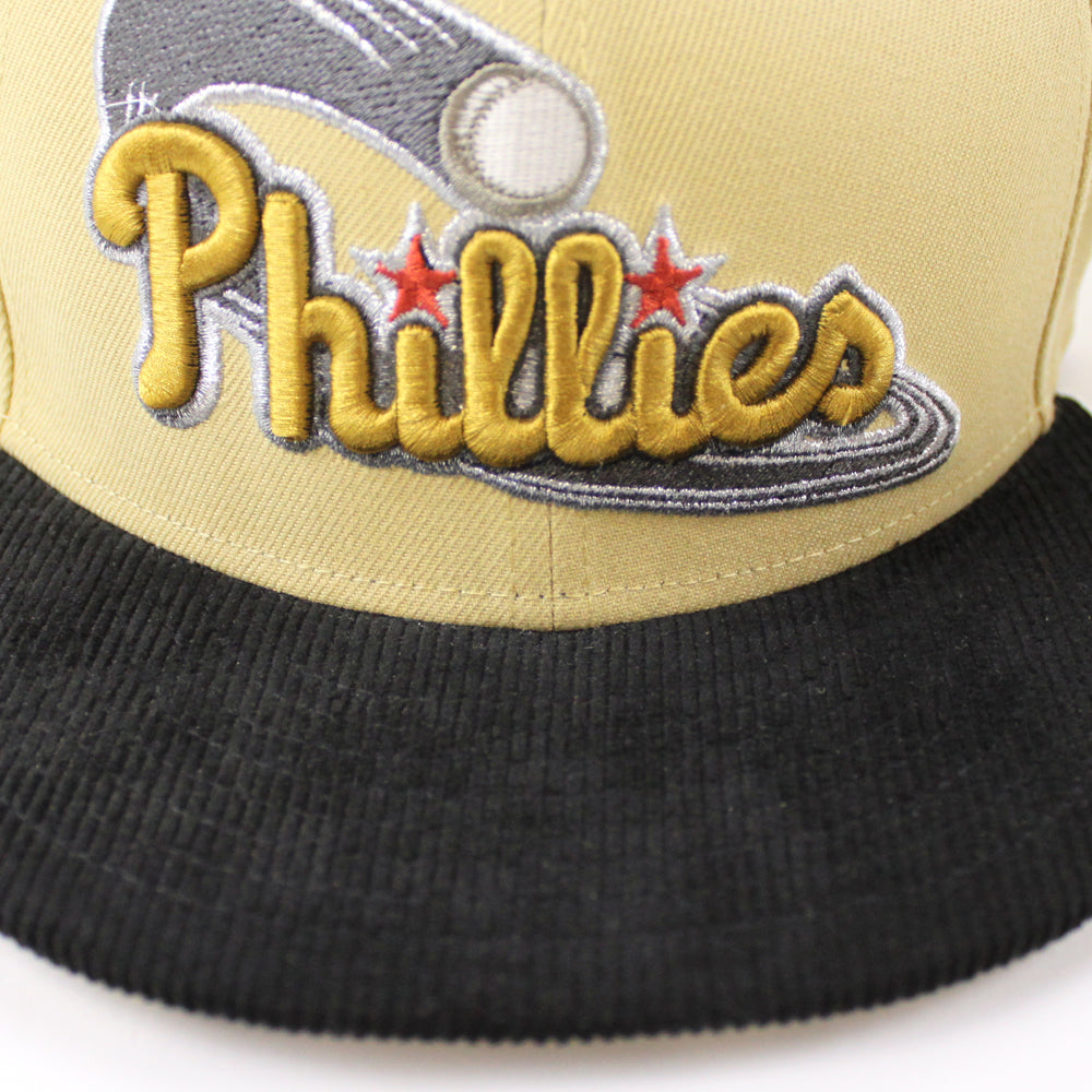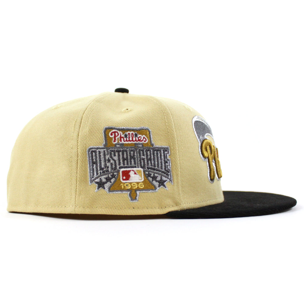 Philadelphia Phillies 1996 All Star Game 59Fifty New Era Fitted Hat in Vegas Gold, Corduroy and Gray Under Brim.