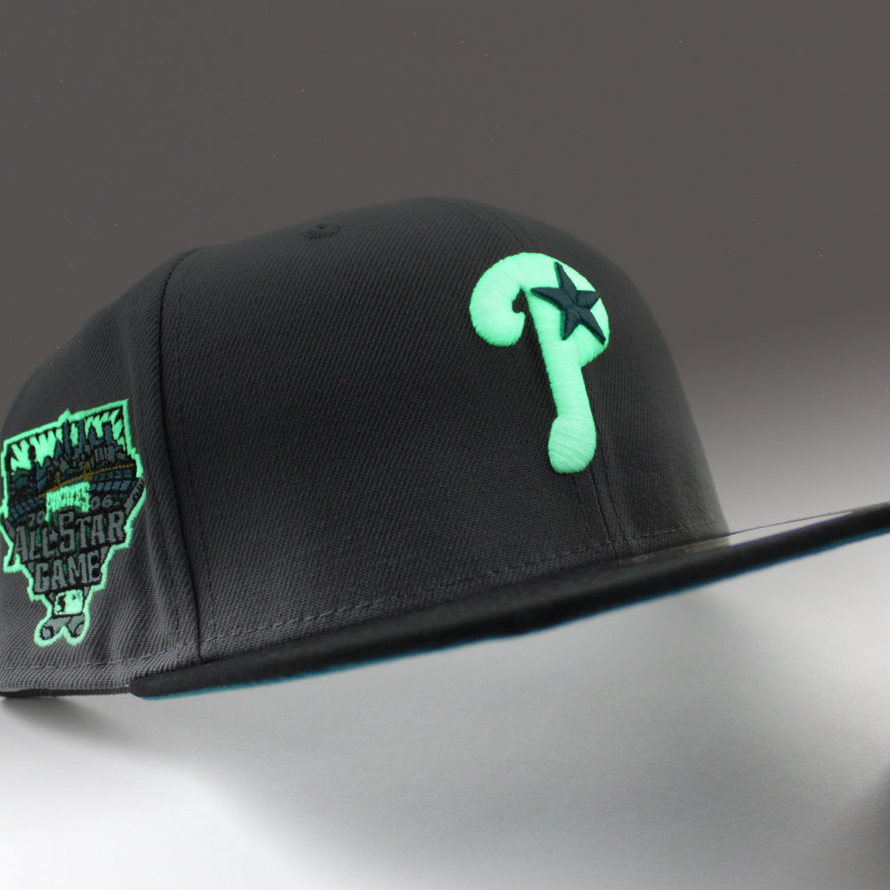 Philadelphia Phillies 2006 All Star Game 59Fifty New Era Fitted Hats (GITD Storm Gray Black Teal Under Brim)
