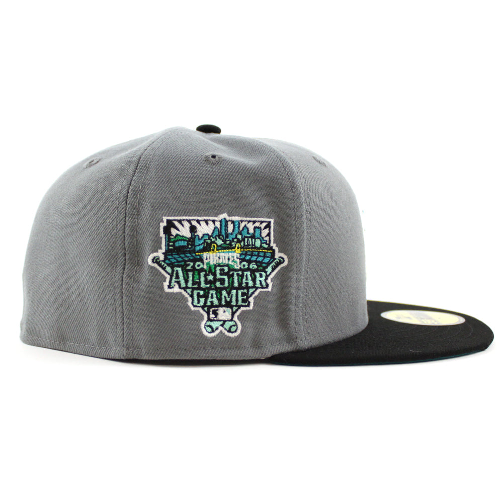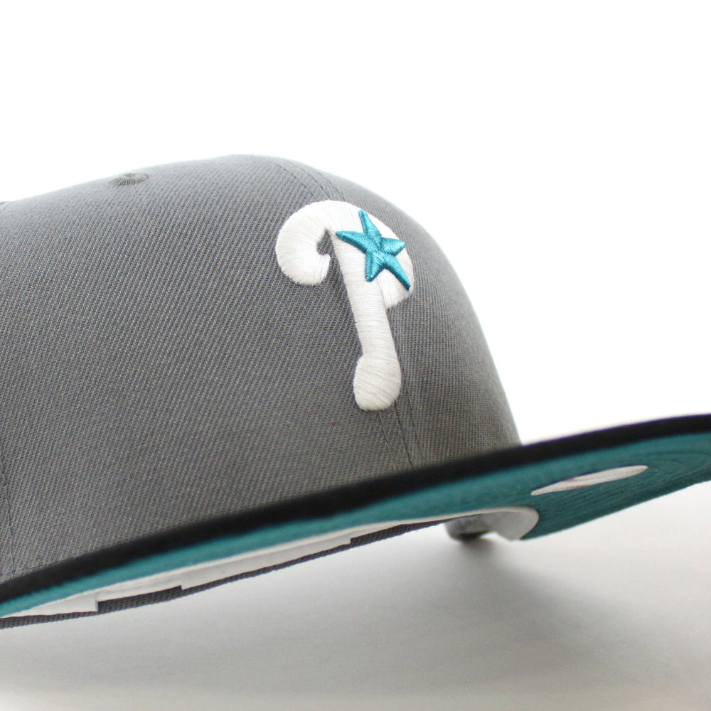Philadelphia Phillies 2006 All Star Game 59Fifty New Era Fitted Hats in Storm Gray Black Visor & Teal Under Brim.