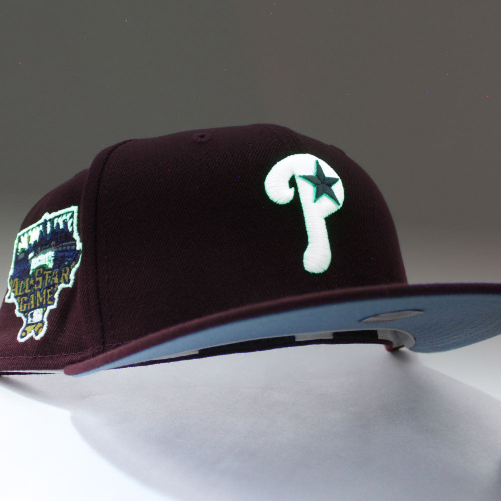 Philadelphia Phillies 2006 All-Star Games 59Fifty New Era Fitted Cap (Glow in the Dark Maroon Sky Blue Under Brim)