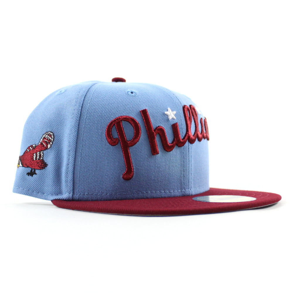 Philadelphia Phillies Philly Phanatic 59Fifty New Era Fitted Hat (Sky Blue Cardinal Red Gray Under Brim)