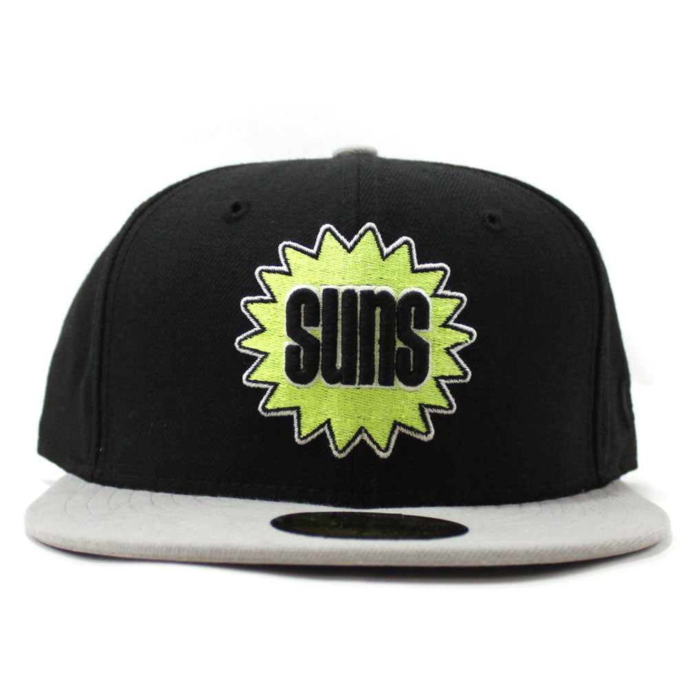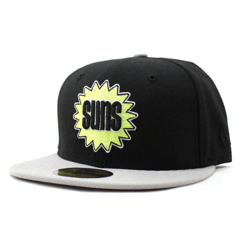Phoenix Suns New Era 59Fifty Fitted Hat in Black, Gray & Neon Yellow.