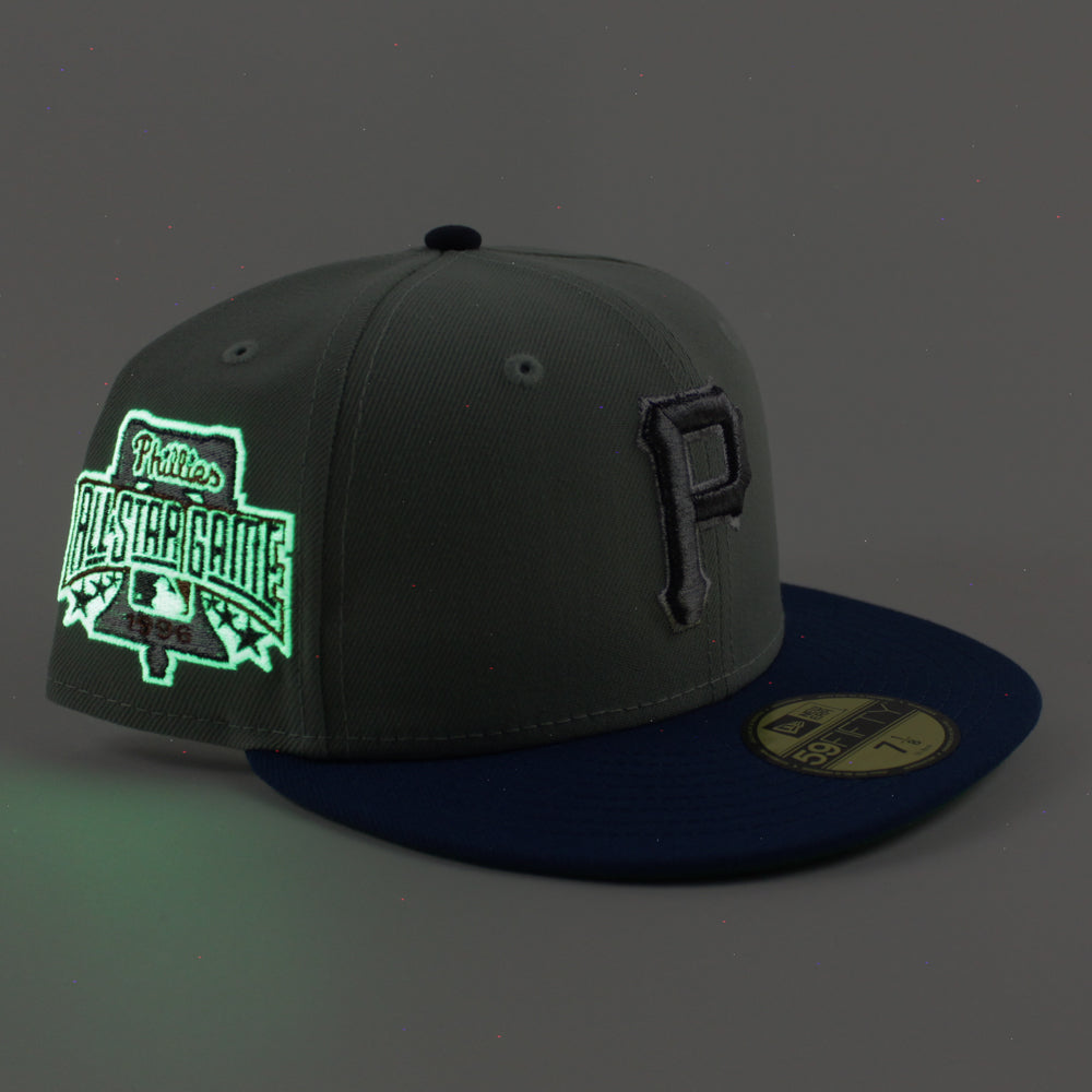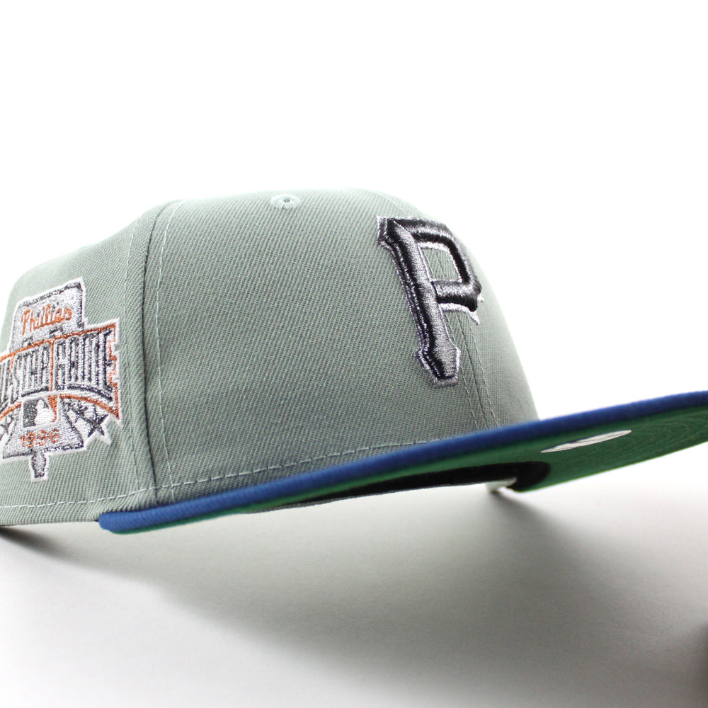 Pittsburgh Pirates 1996 All Star Game 59Fifty New Era Fitted Hats in Everest Green, SeaShore Blue and Green Under Brim.