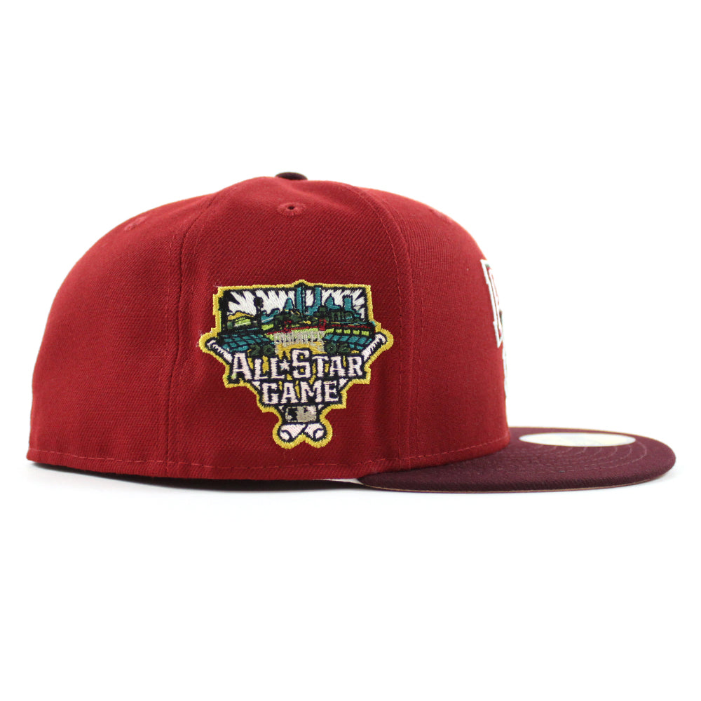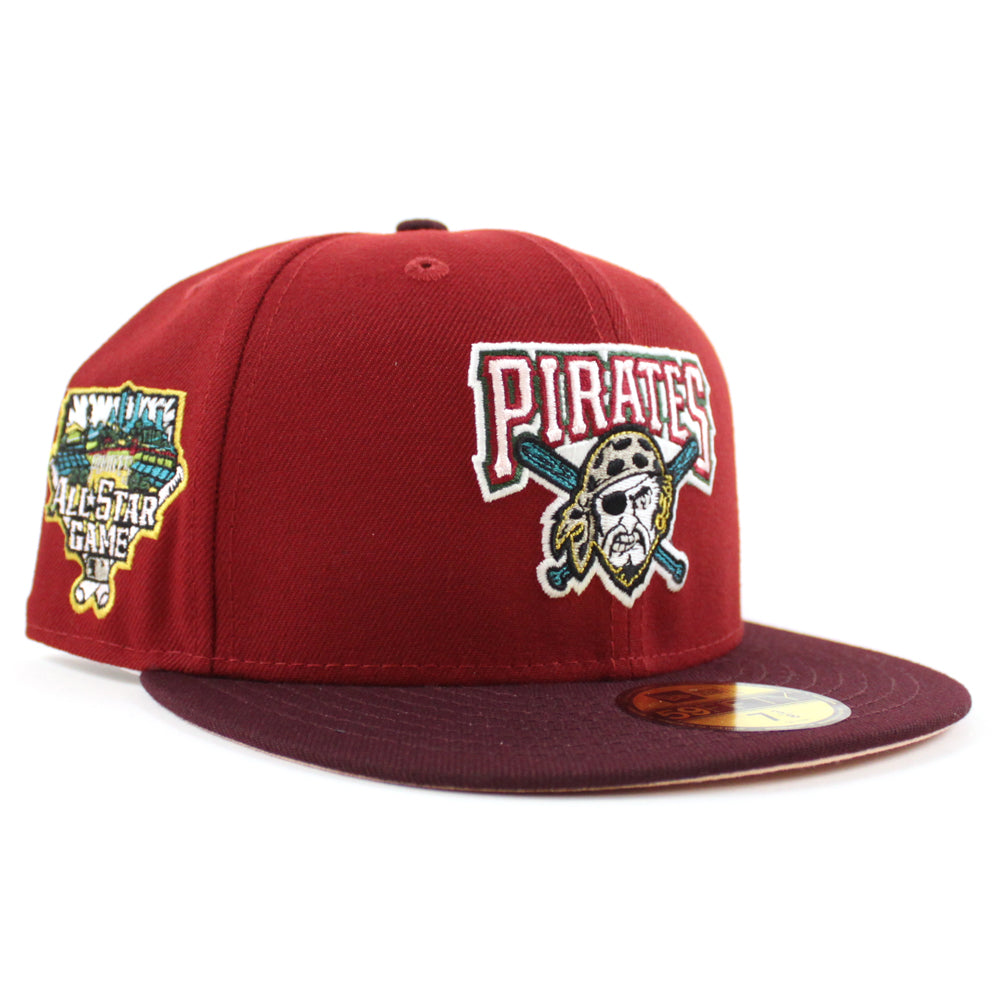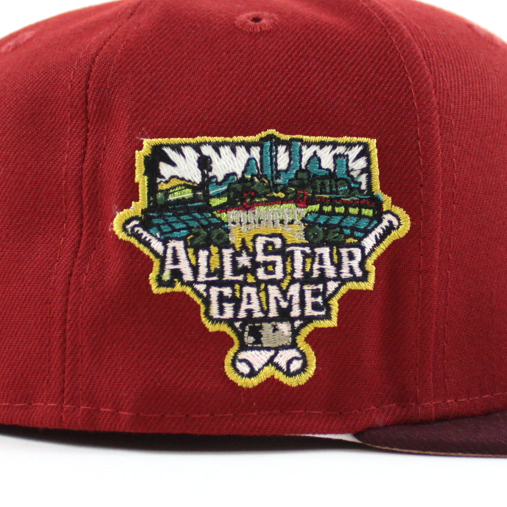 Pittsburgh Pirates 2006 All Star Game 59Fifty New Era Fitted Cap in H Red , Maroon and Blush Sky Under Brim.