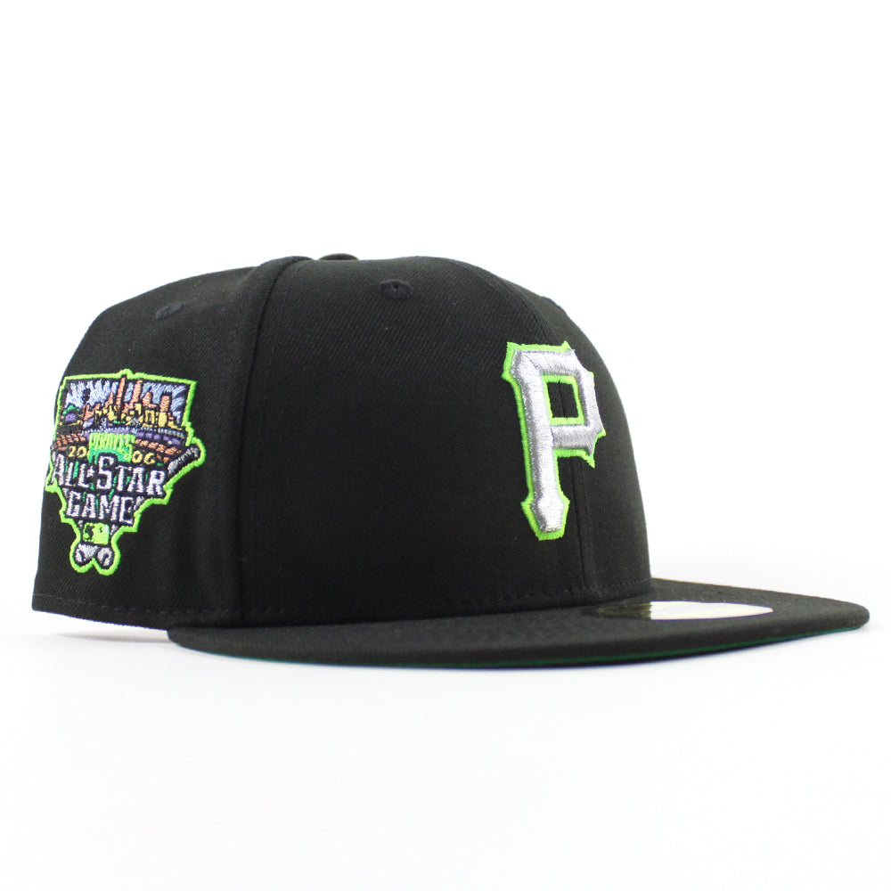 Pittsburgh Pirates 2006 All Star Game 59Fifty New Era Fitted Hats in Black and Green Under Brim.