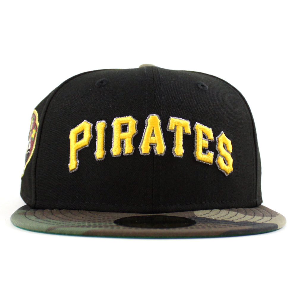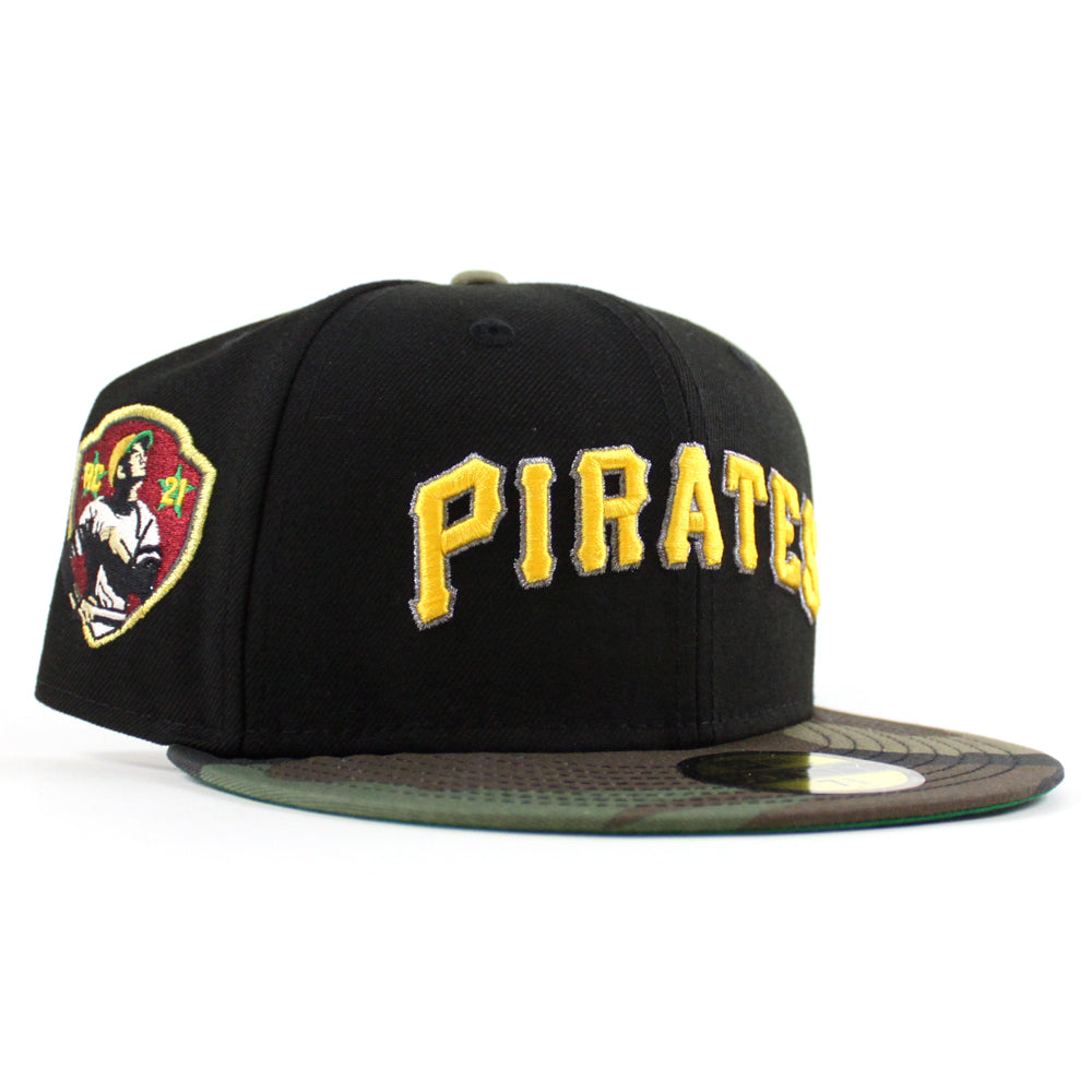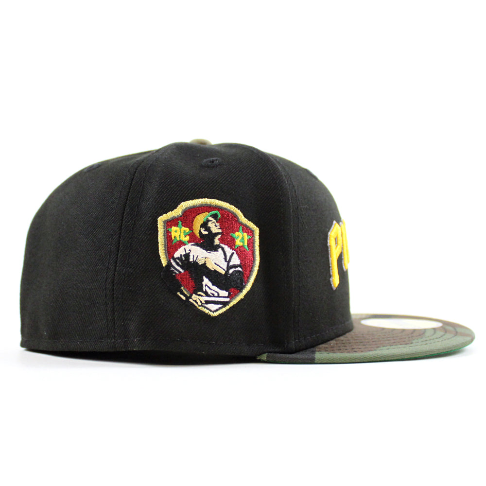 Pittsburgh Pirates Roberto Calmente 59Fifty New Era Fitted Hats in Black, WoodLand Camo and Green Under Brim.