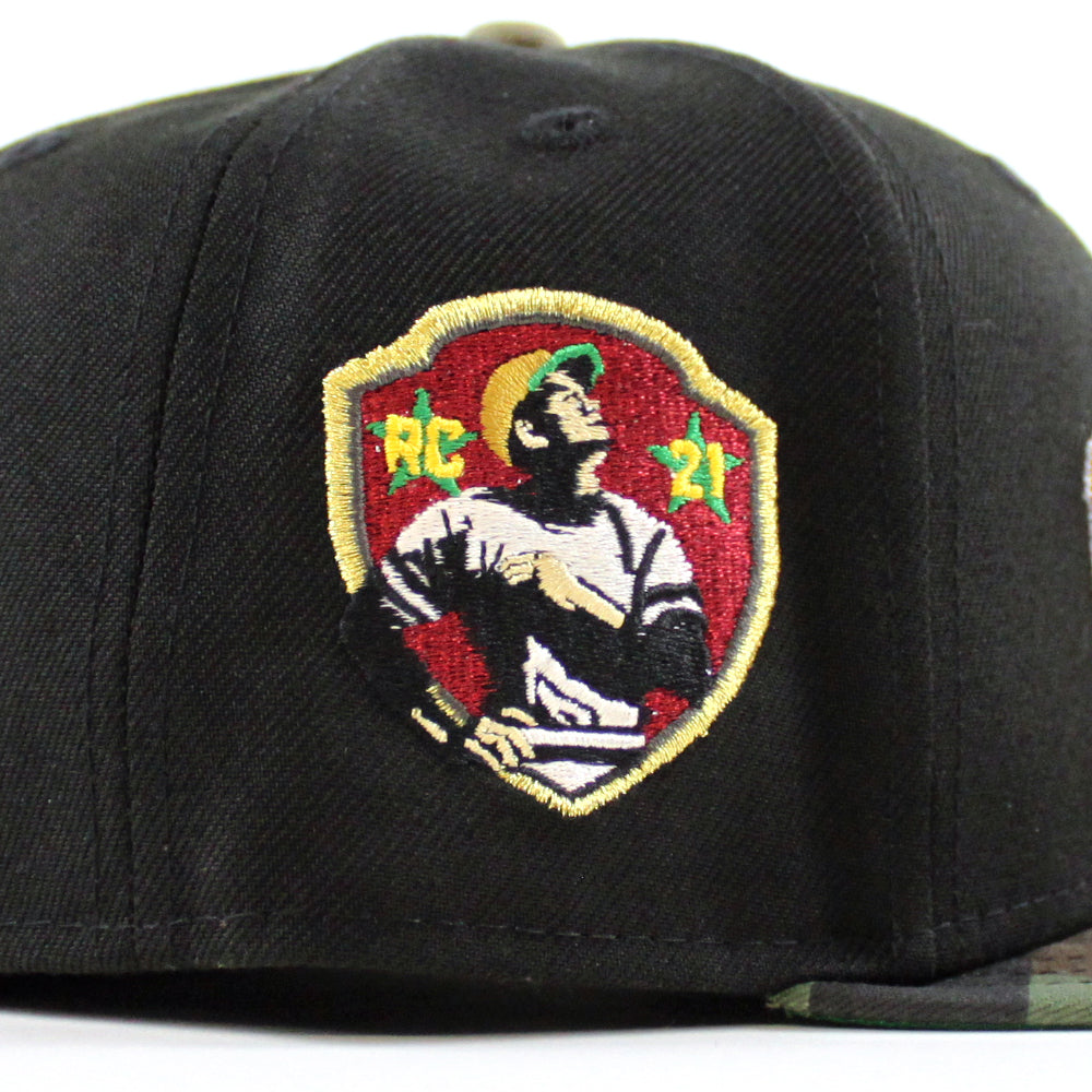 Pittsburgh Pirates Roberto Calmente 59Fifty New Era Fitted Hats (Black WoodLand Camo Green Brim)