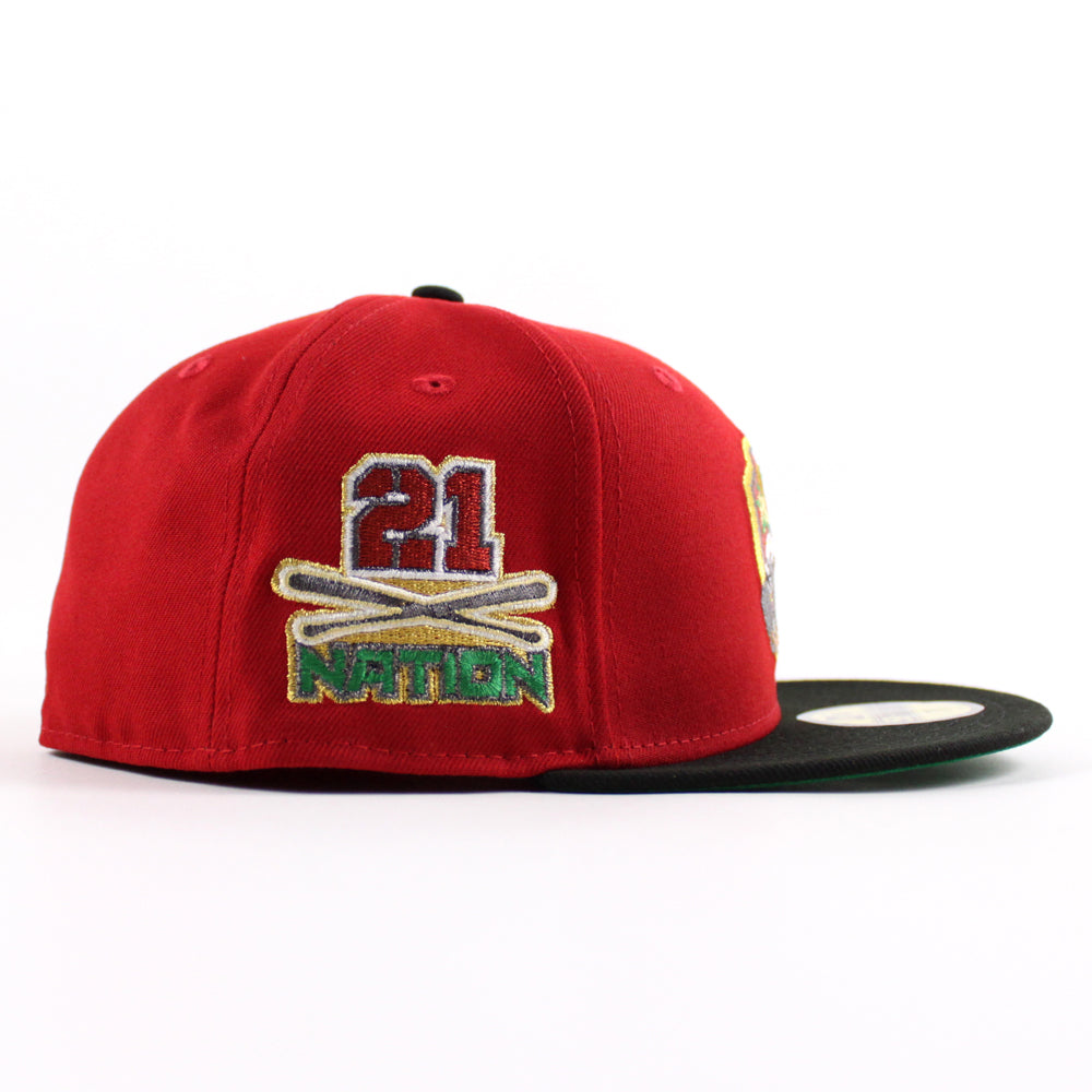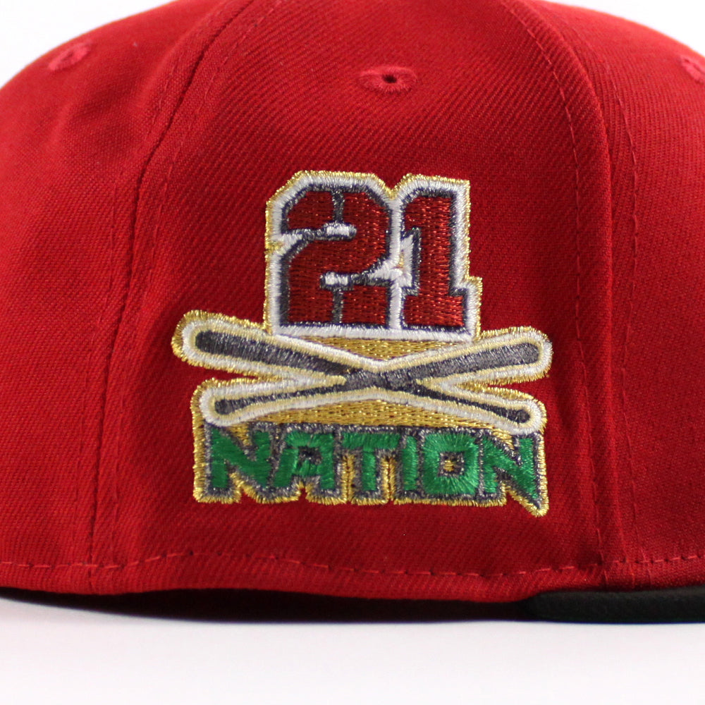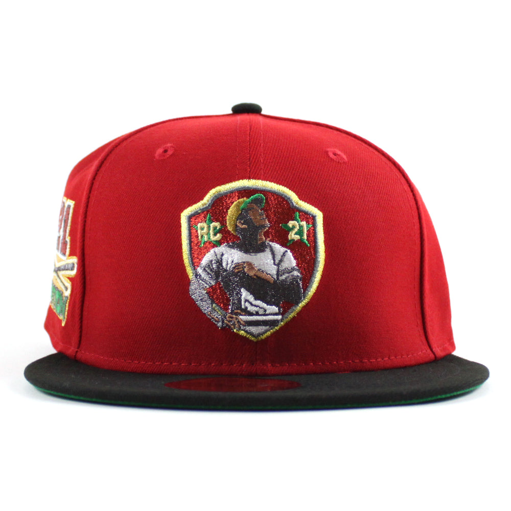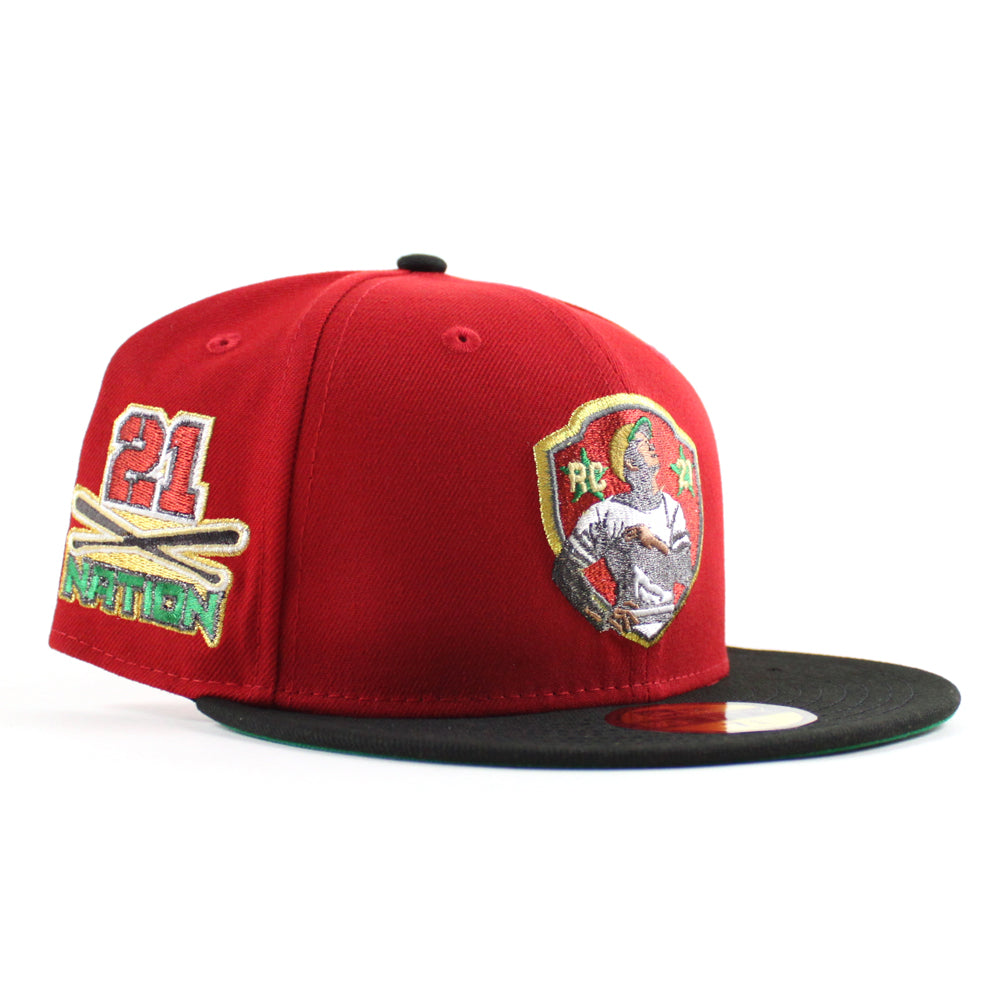 Pittsburgh Pirates ROBERTO CLEMENTE 21 Nation Patch New Era 59Fifty Fitted Hat (Scarlet Red Black Green Under Brim)