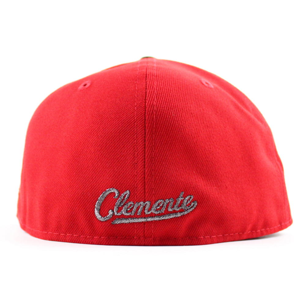 Pittsburgh Pirates ROBERTO CLEMENTE 21 Nation Patch New Era 59Fifty Fitted Hat is Scarlet Red, Black and Green Under Brim.  50
