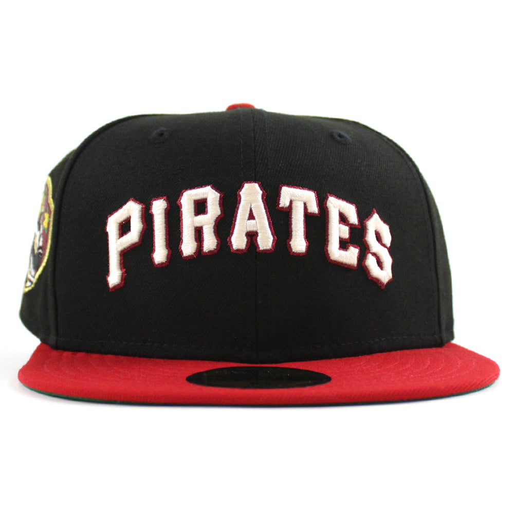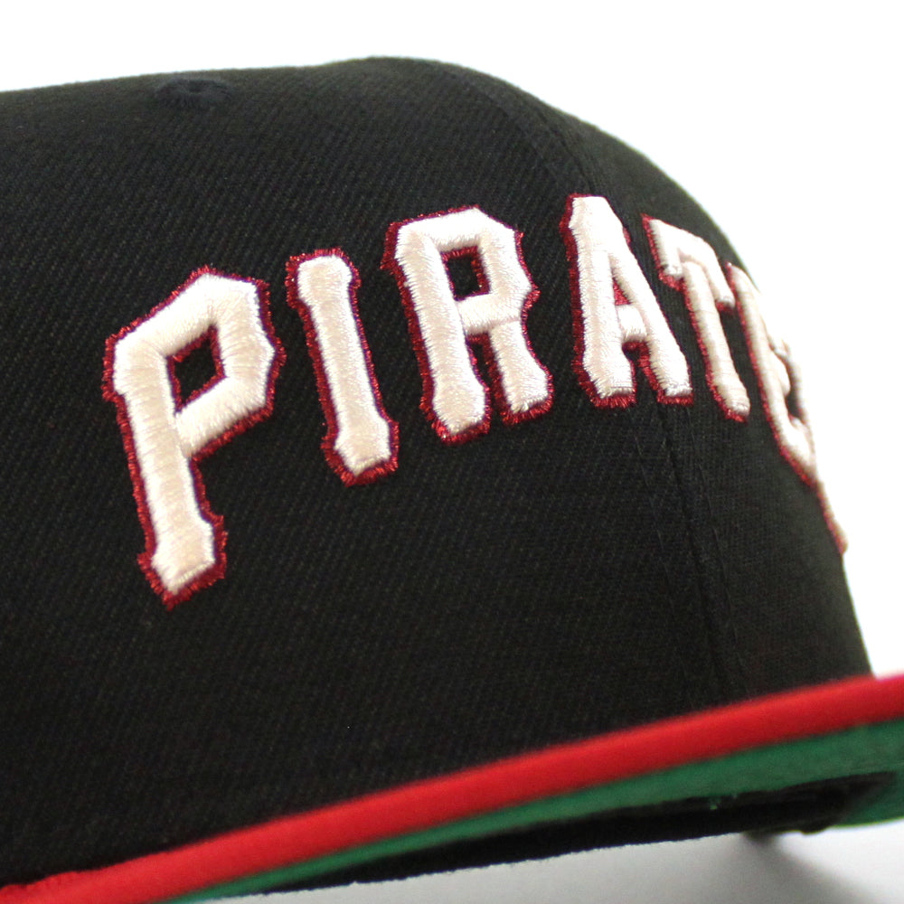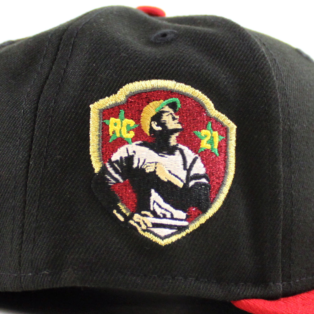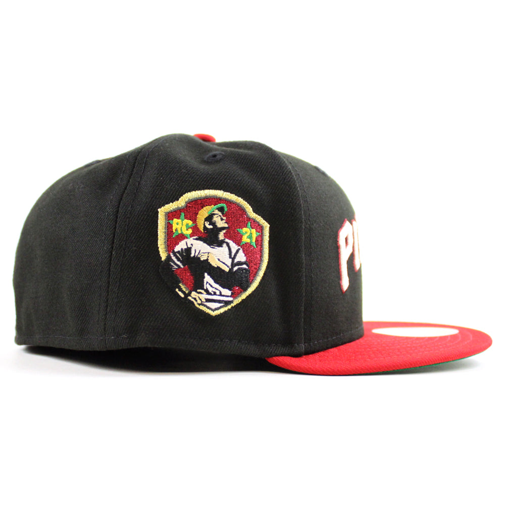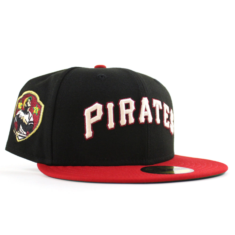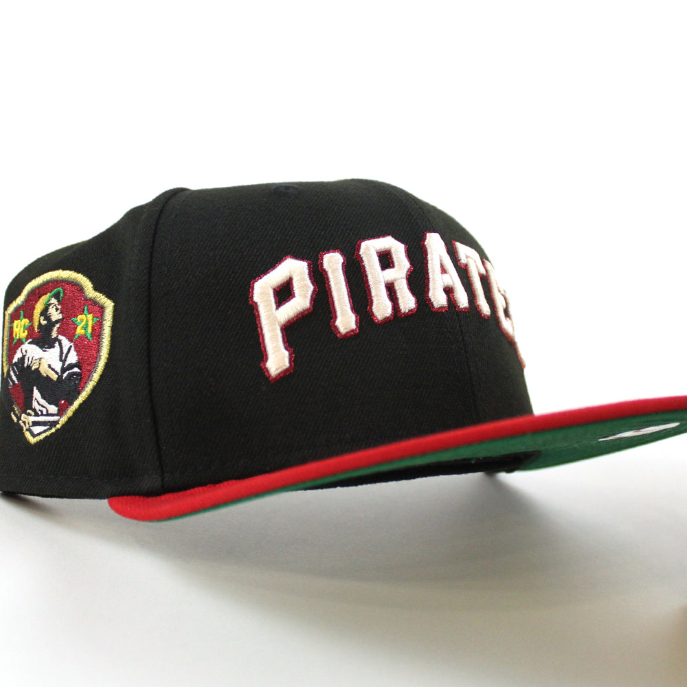 Pittsburgh Pirates ROBERTO CLEMENTE 21 Patch New Era 59Fifty Fitted Hat (Black Scarlet Red Green Under Brim)