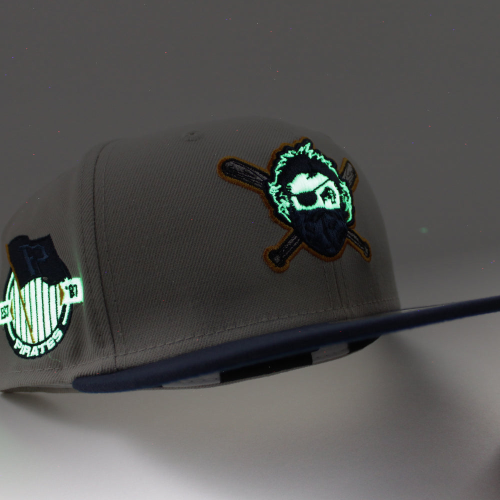Pittsburgh Pirates TEAM FLAG 59Fifty New Era Fitted Hat (GITD Stone Oceanside Blue Seashore Blue Under Brim)
