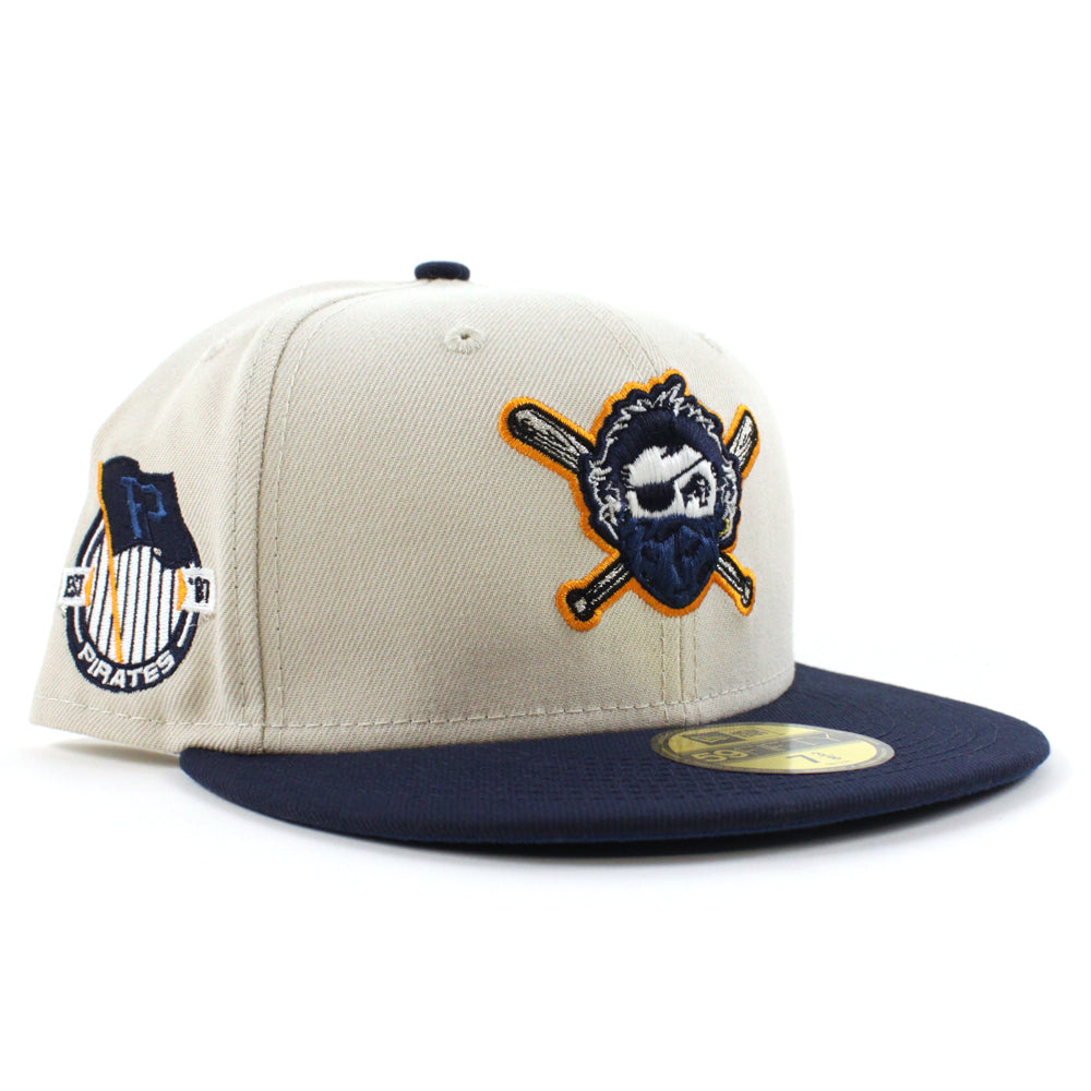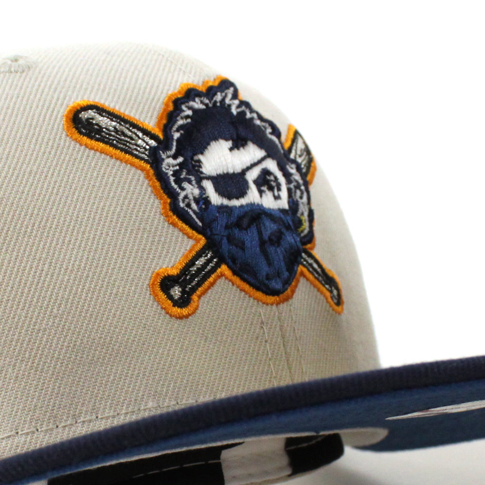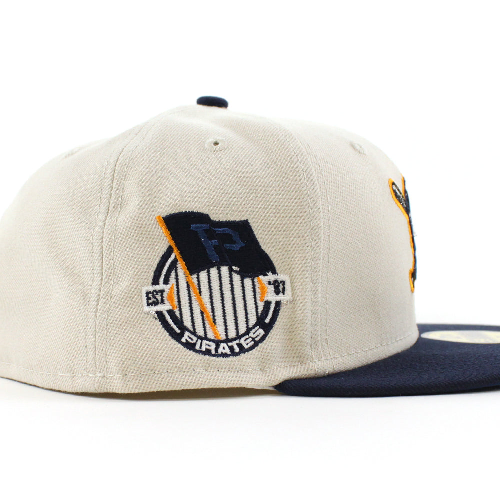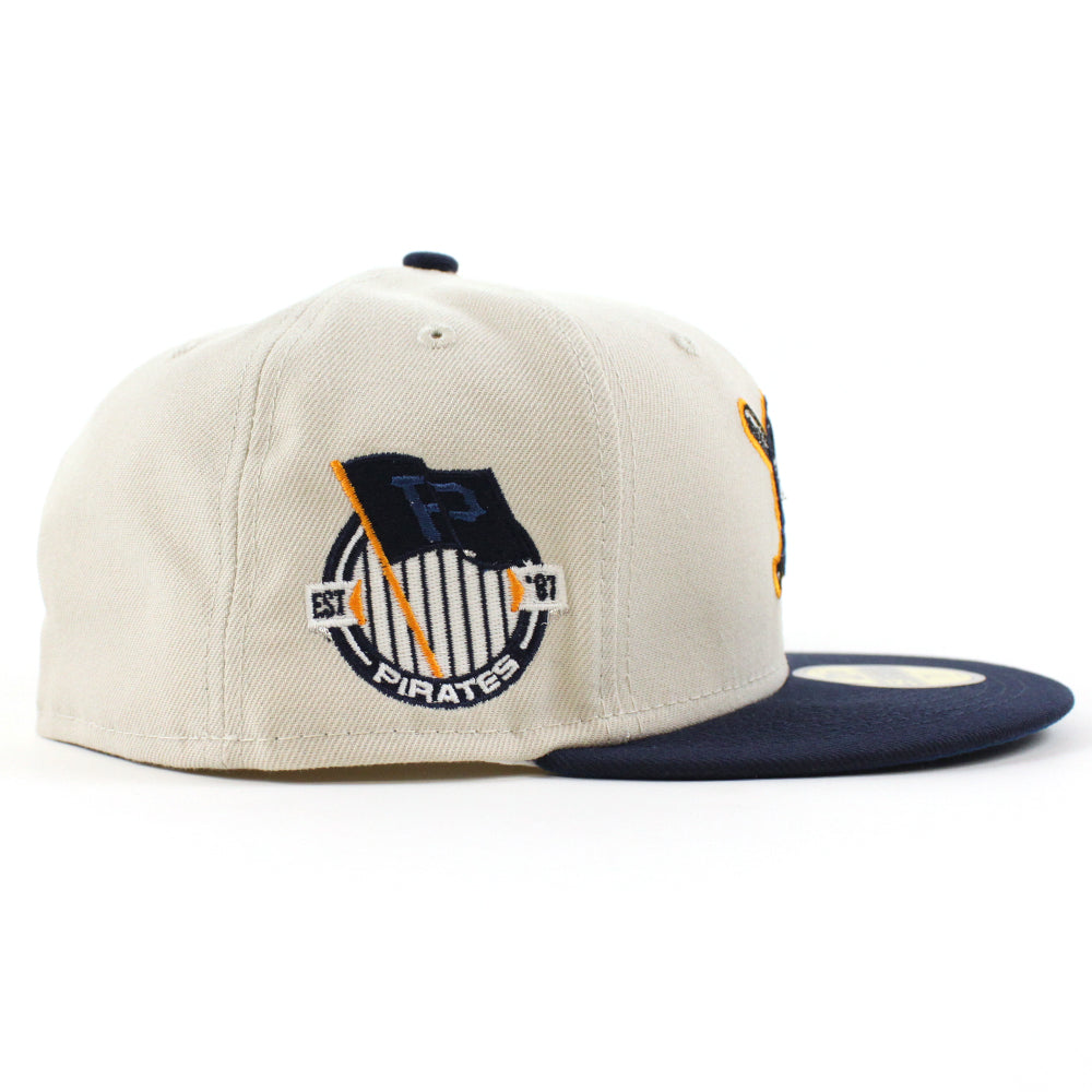 Pittsburgh Pirates TEAM FLAG 59Fifty New Era Fitted Hat in Stone, Oceanside Blue & Seashore Blue Under Brim.