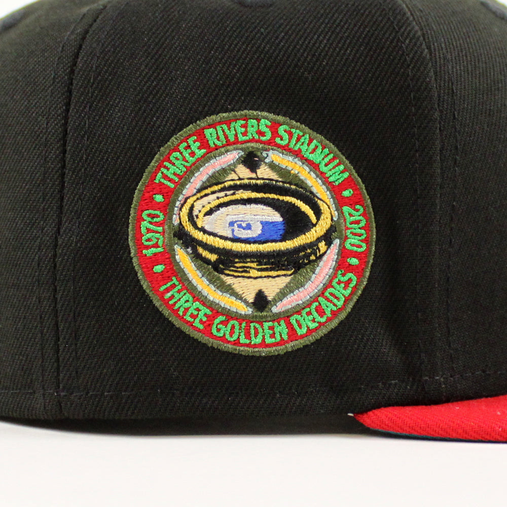 Pittsburgh Pirates THREE RIVERS STADIUM 59Fifty New Era Fitted Hat (BLACK SCARLET TITLEWAVE Under Brim)