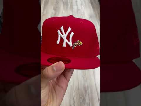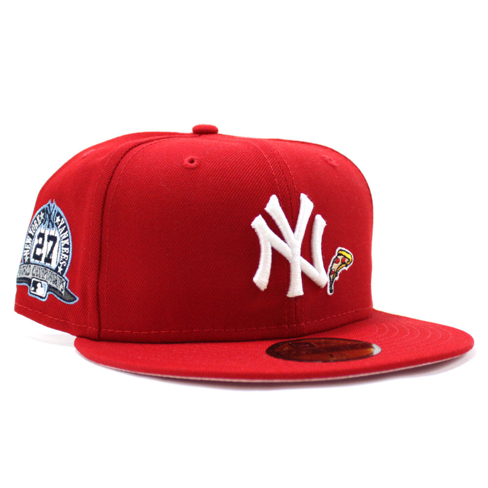 PIZZA New York Yankees 27 World Championships New Era 59Fifty Fitted Hat in Red & Pink Under Brim.
