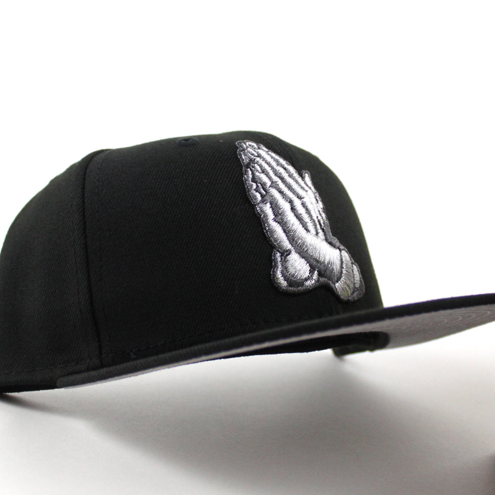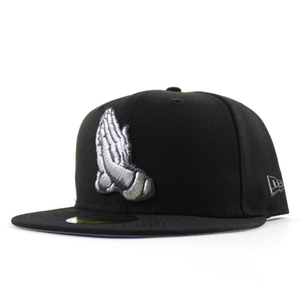 Long time since we made Praying Hands New Era Fitted Cap…. This Praying Hands New Era 59Fifty Fitted Hat is for those who believe in a higher power! Pray for the best pray for the weak just don't become the prey! Praying Hands in Black & Gray Under Brim. -