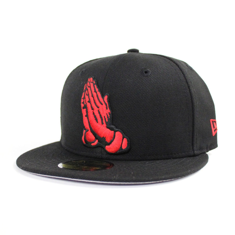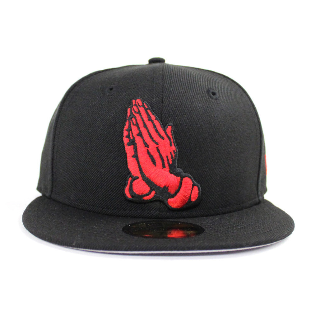 Praying Hands New Era 59Fifty Fitted Hat (Black Red Gray Under Brim)