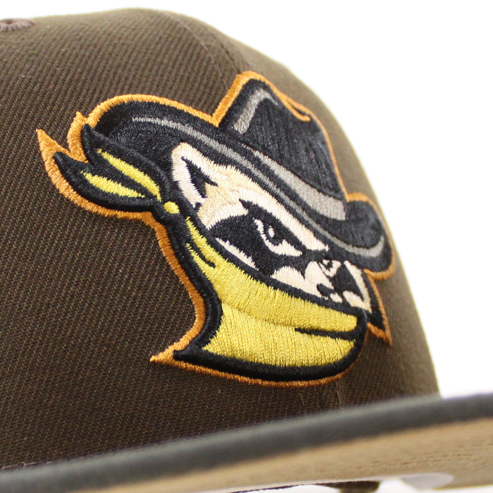 This Quad Cities River Bandits PAW BALL New Era Fitted Cap we made features Walnut, Pewter, with Khaki under brim.