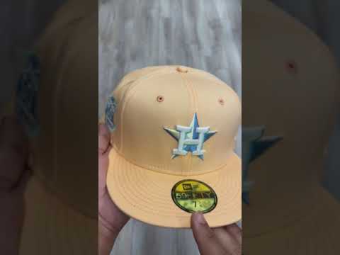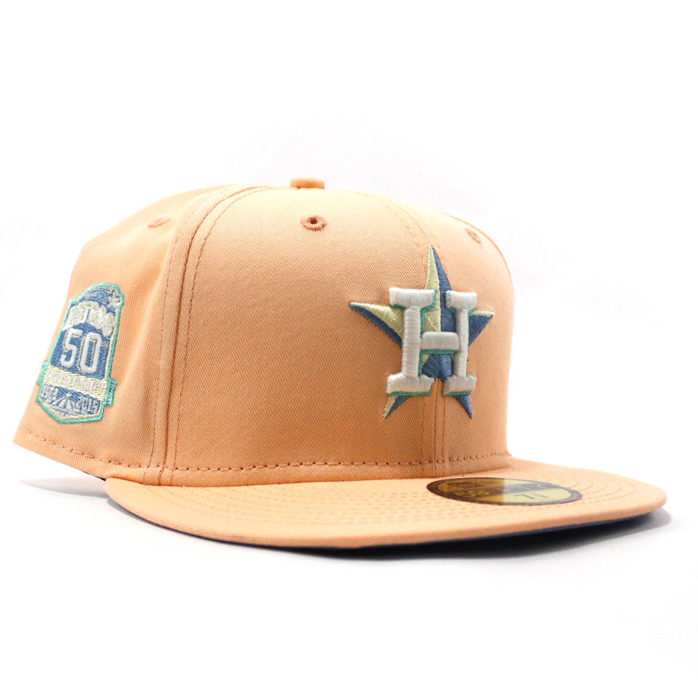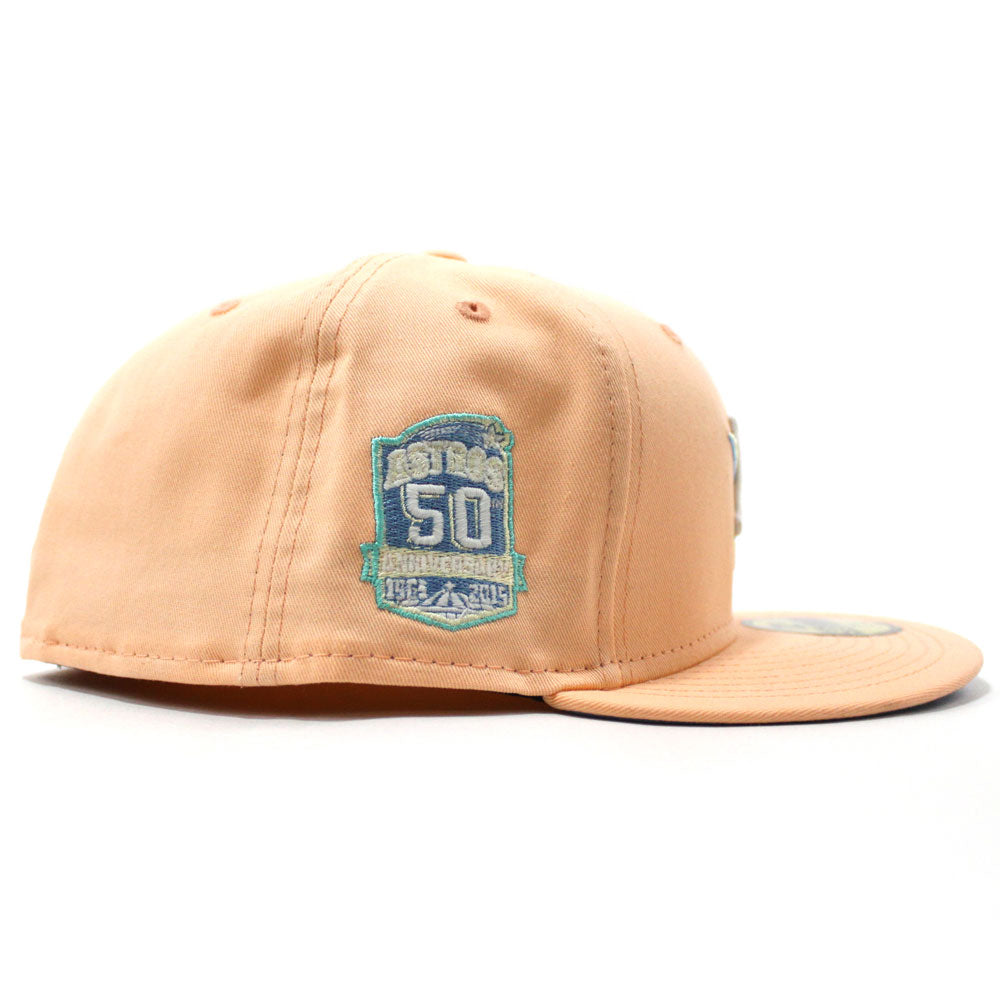 Houston Astros 50th Anniversary New Era 59Fifty Fitted Hat in Peach with a Sky Blue Under Brim.