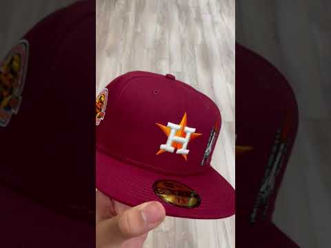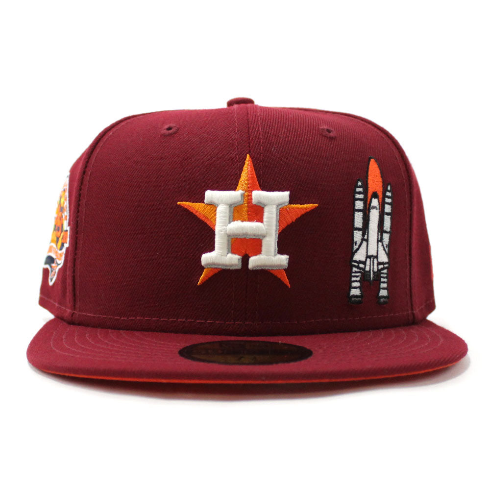 Rocket Houston Astros Cooperstown 45th Anniversary New Era 59Fifty Fitted Hat in Cardnial wth a Orange Under Brim.