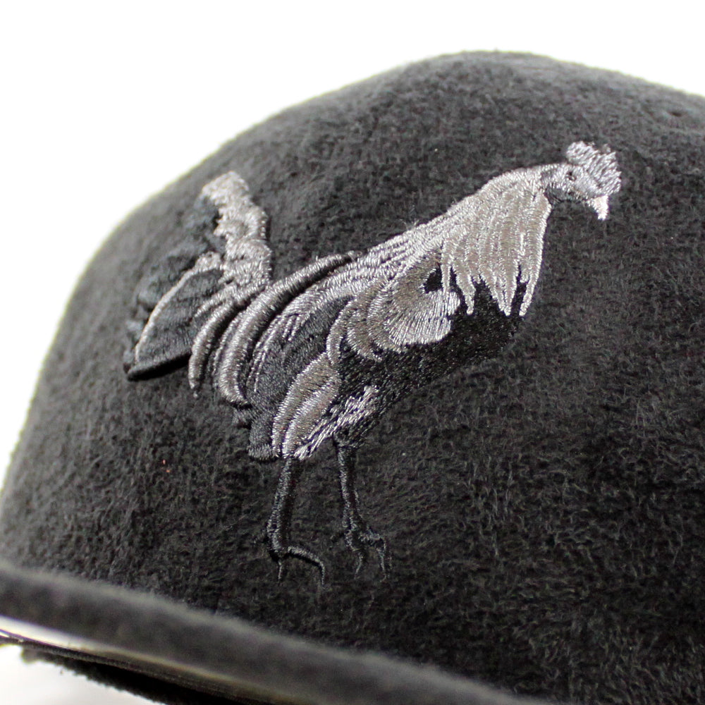 ROOSTER New Era 59Fifty Fitted Cap in Black Suede and Black Under Brim.