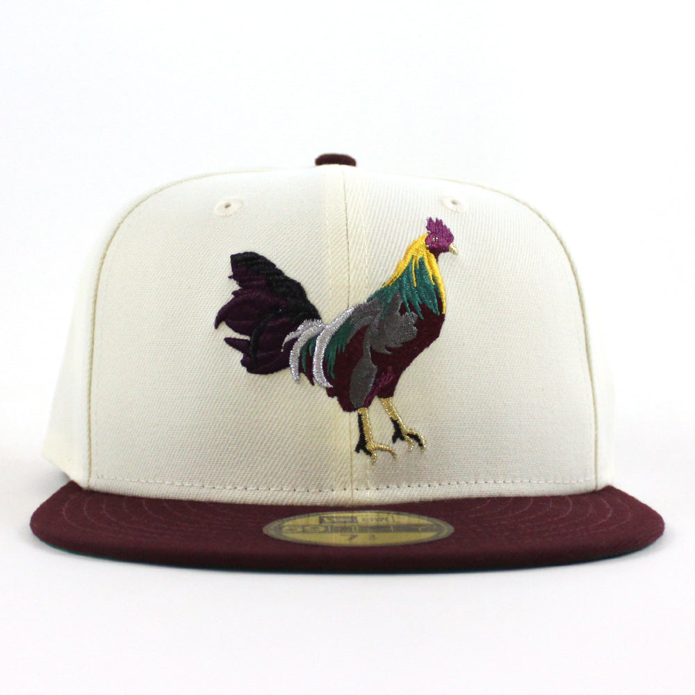 ROOSTER New Era 59Fifty Fitted Hat (Chrome White Maroon Green Under Brim)
