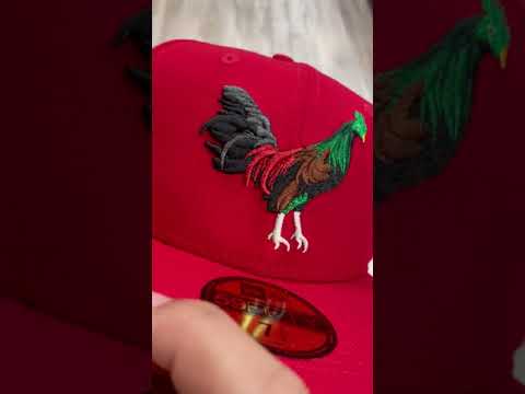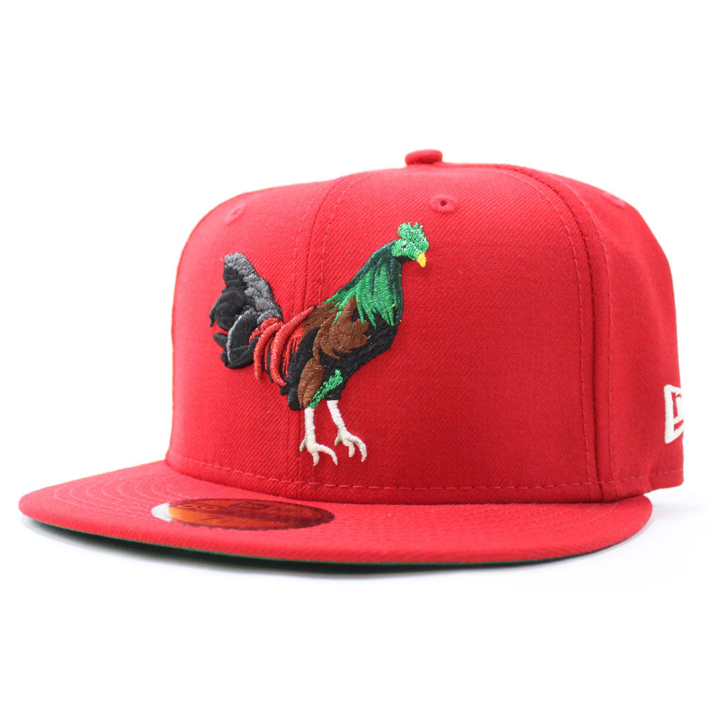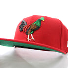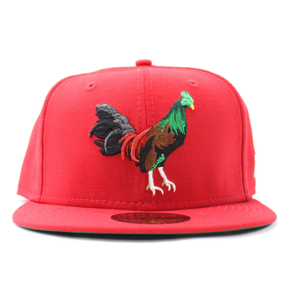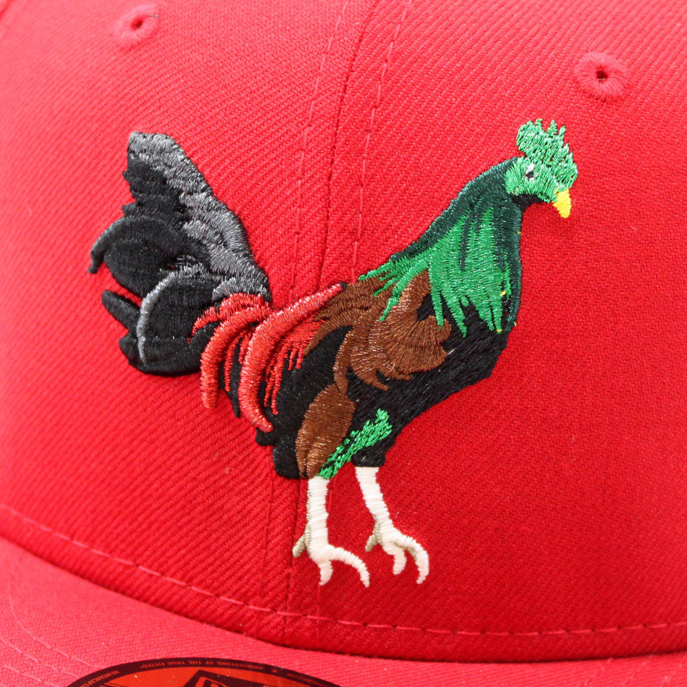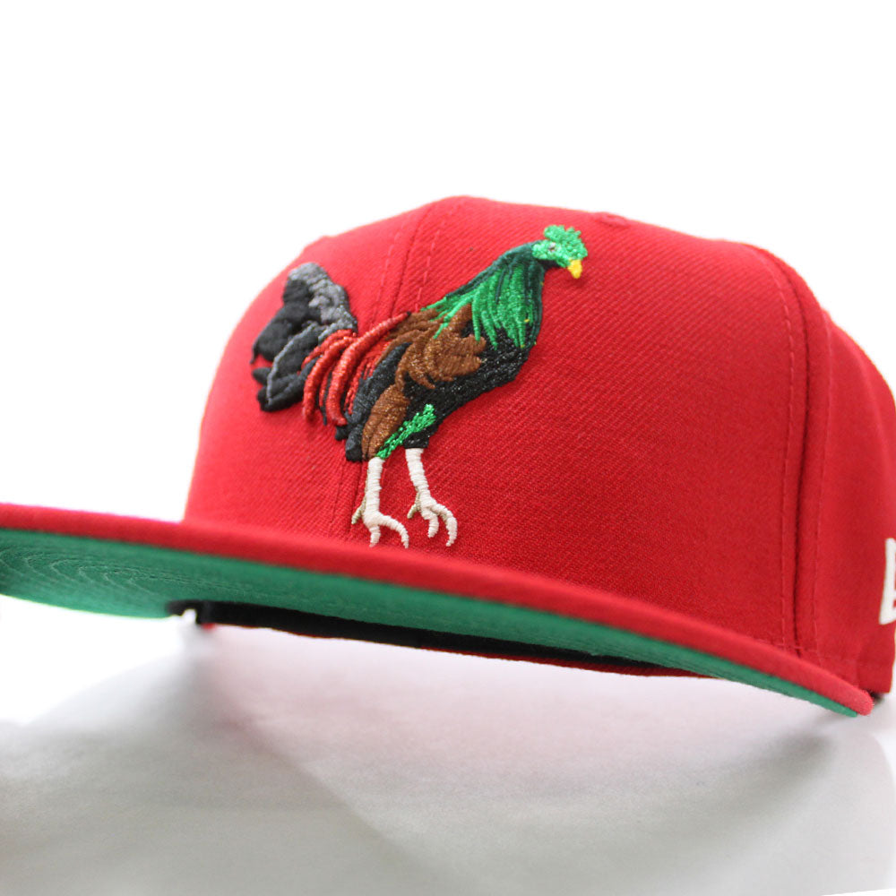 ROOSTER (Gallo) New Era 59Fifty Fitted Hat in Red & Green Under Brim.