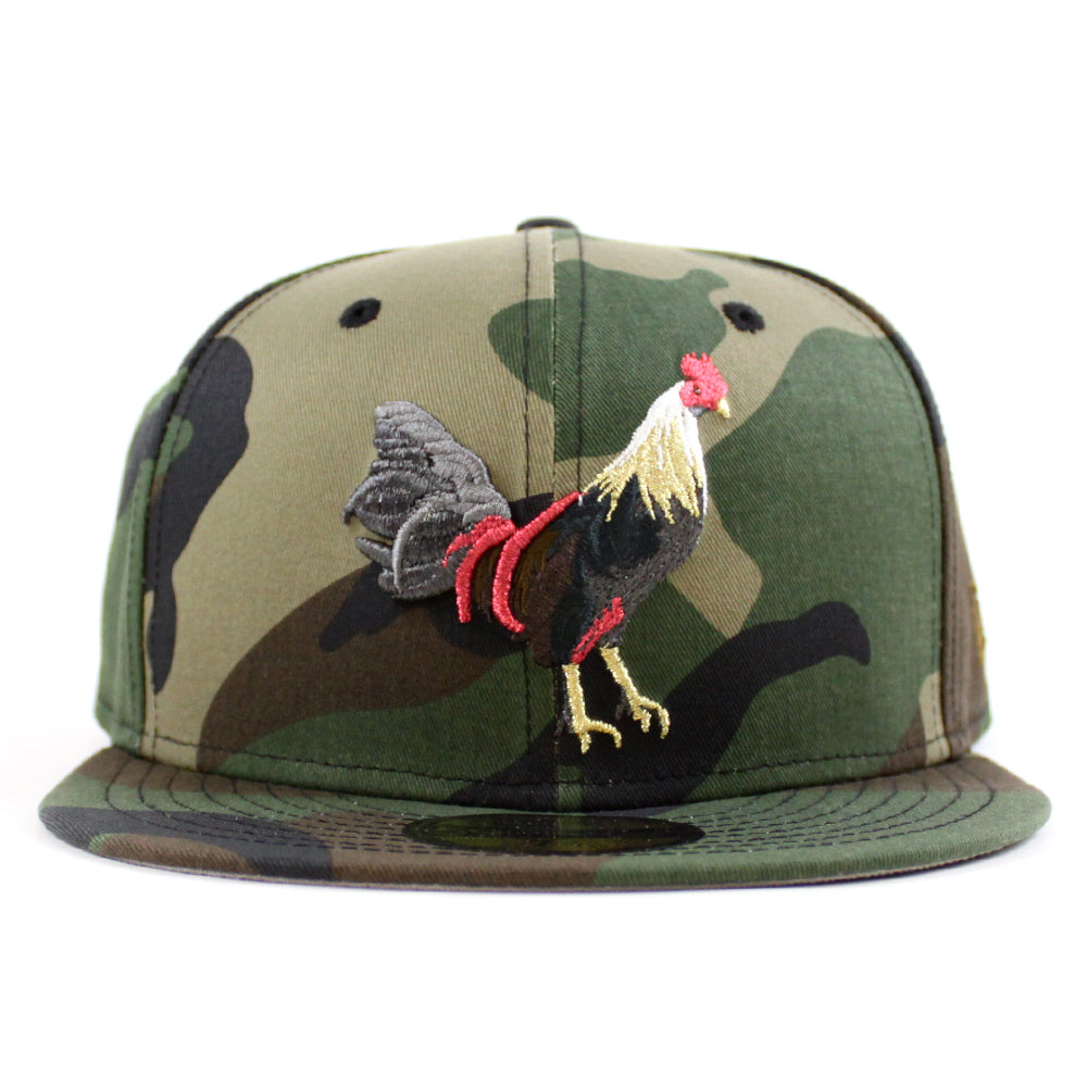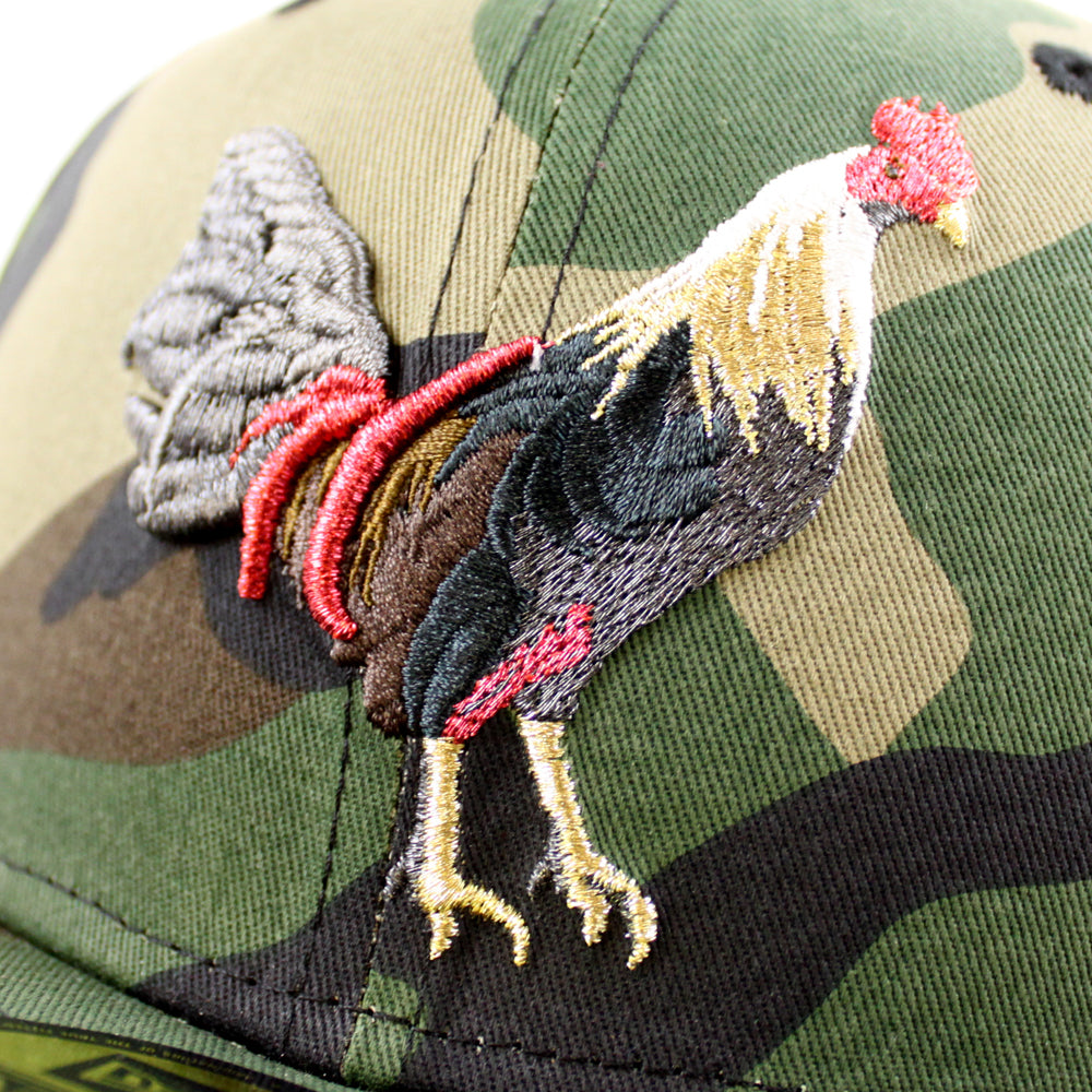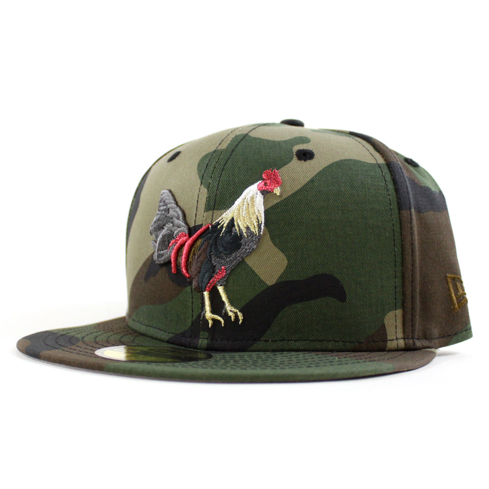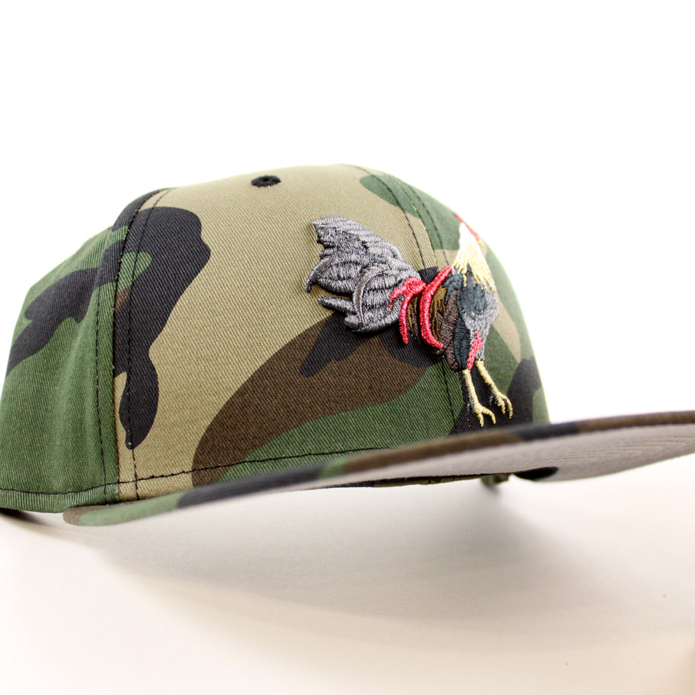 ROOSTER New Era 59Fifty Fitted Cap in WoodLand Camo and Gray Under Brim.