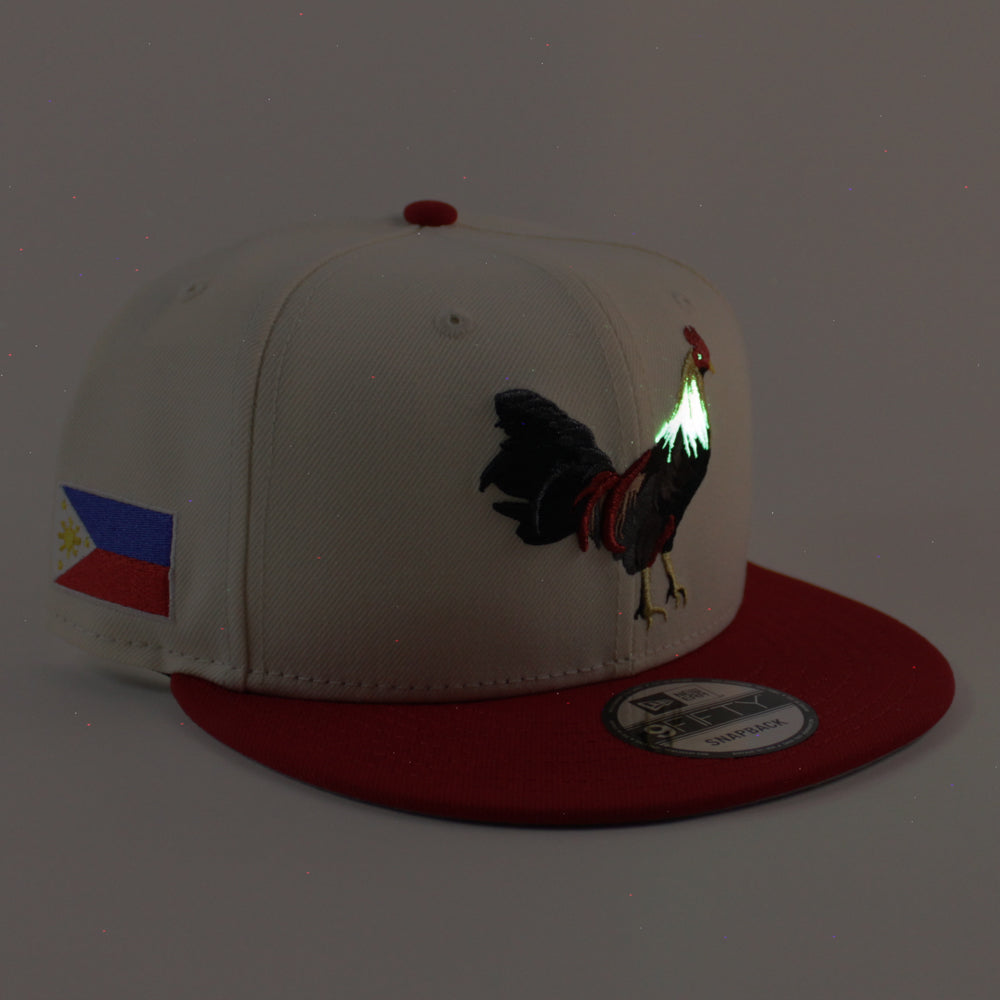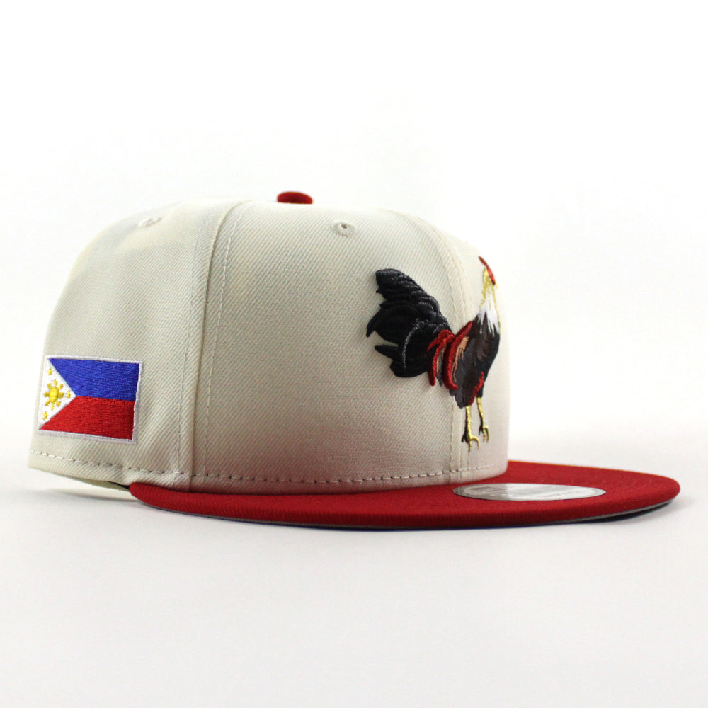 ROOSTER Philippines flag New Era 9Fifty Snapback Cap in Chrome White, Red and Gray Under Brim.
