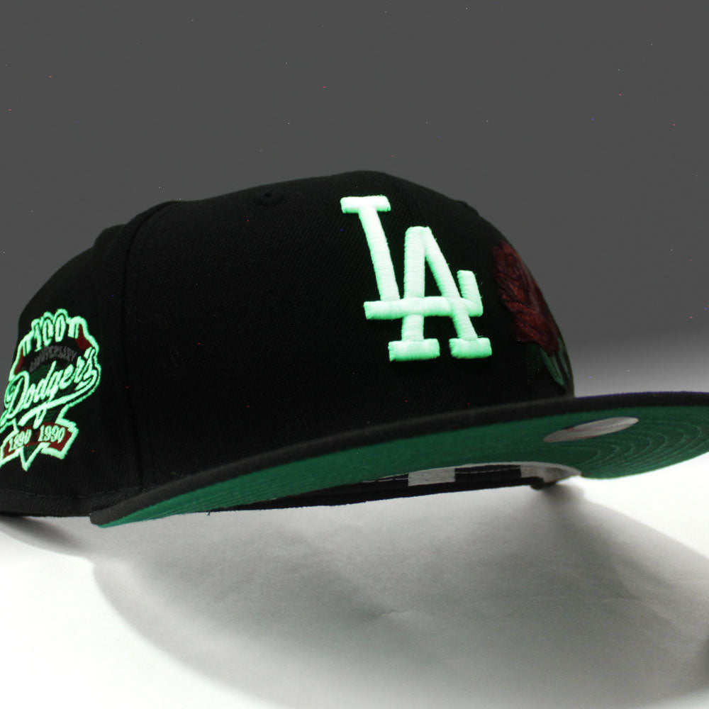 Los Angeles Dodgers 100 Anniversary New Era 59Fifty Fitted Hat (Glow in the Dark Rose Black Green Under Brim)