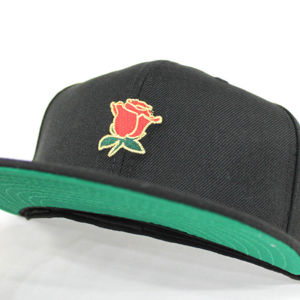 Rose New Era 59Fifty Fitted Hat in Black with Green Under Brim.