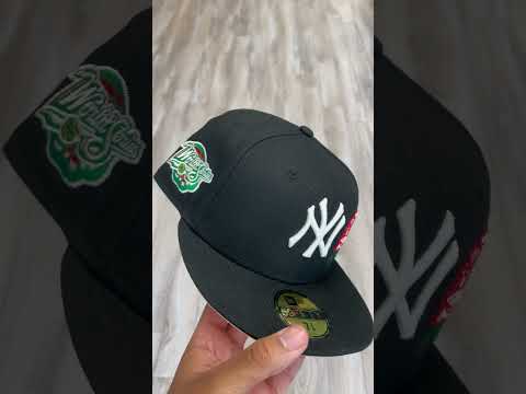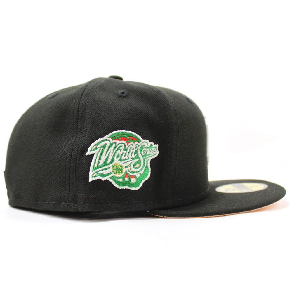 Rose New York Yankees 1998 World Series New Era 59Fifty Fitted Hat in Black & Peach Under Brim.