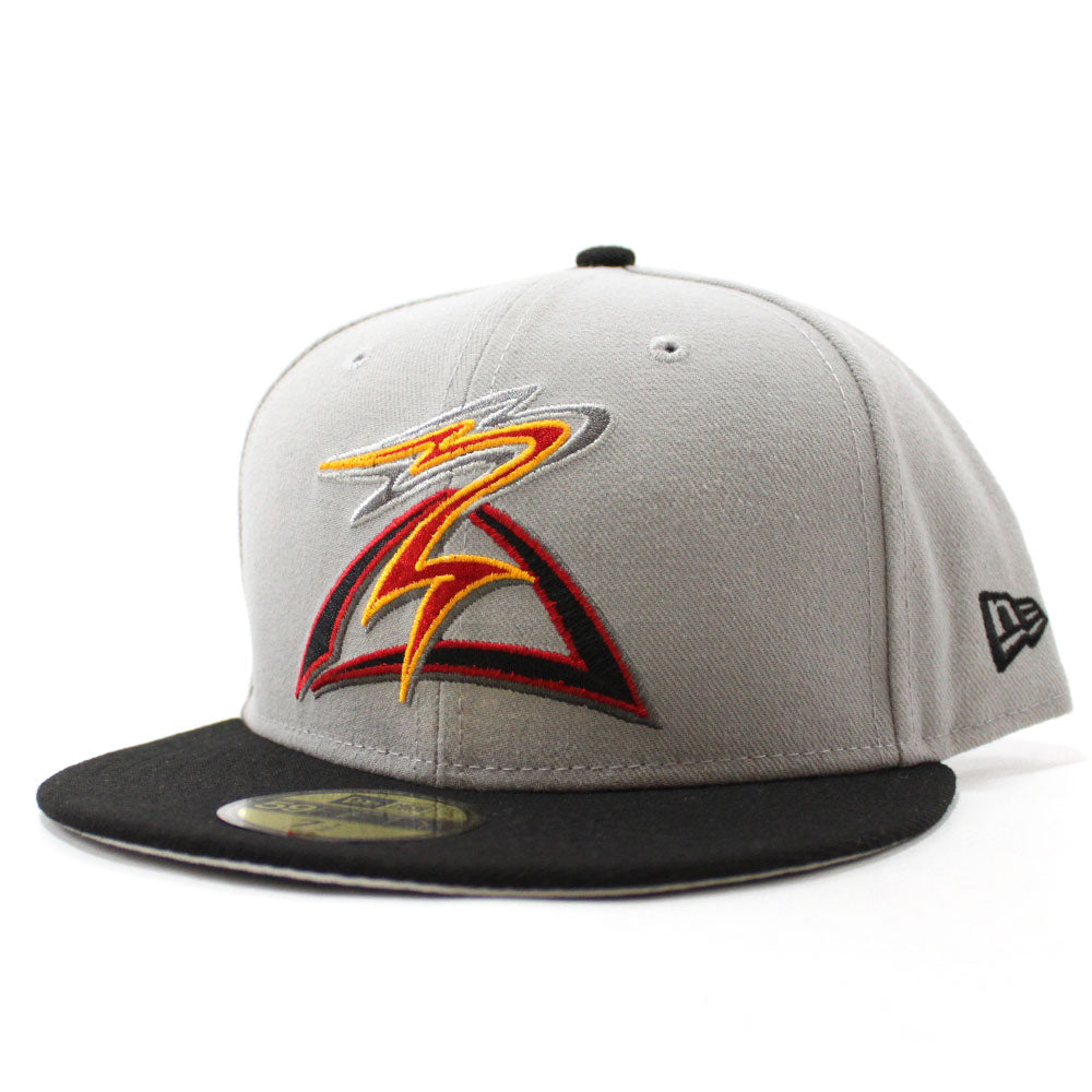 SALEM-KEIZER VOLCANOES NEW ERA 59FIFTY FITTED HAT in Gray, Black & Gray Under Brim.