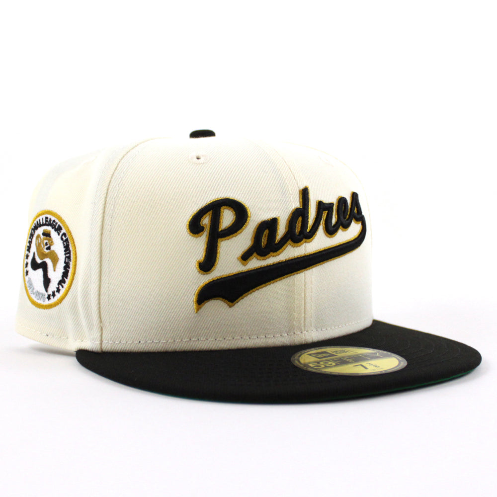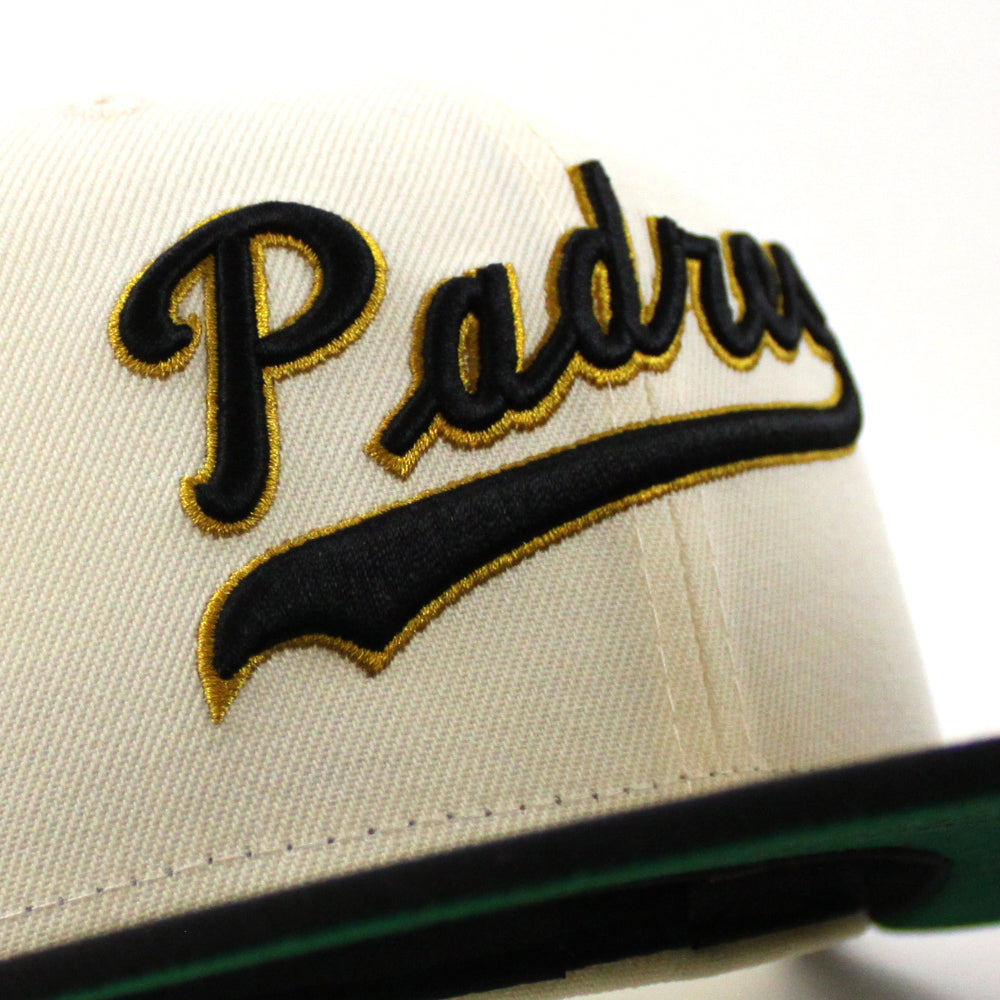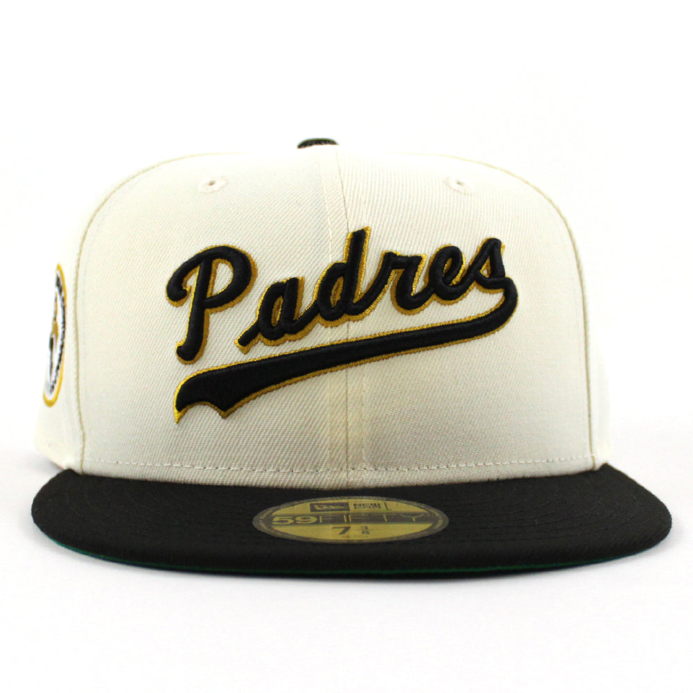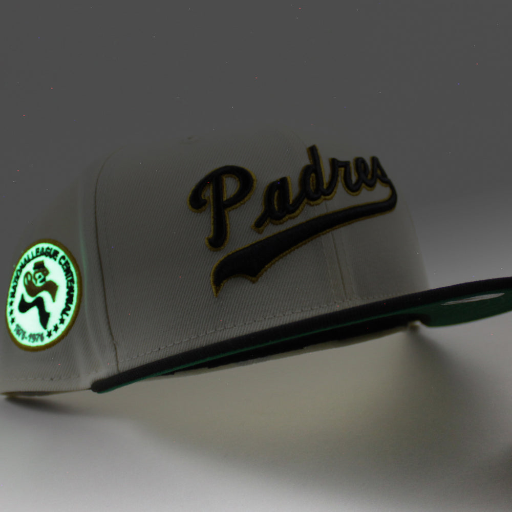 San Diego Padres 1879-1976 New Era 59Fifty Fitted Cap in Chrome White, Black and Green Under Brim.
